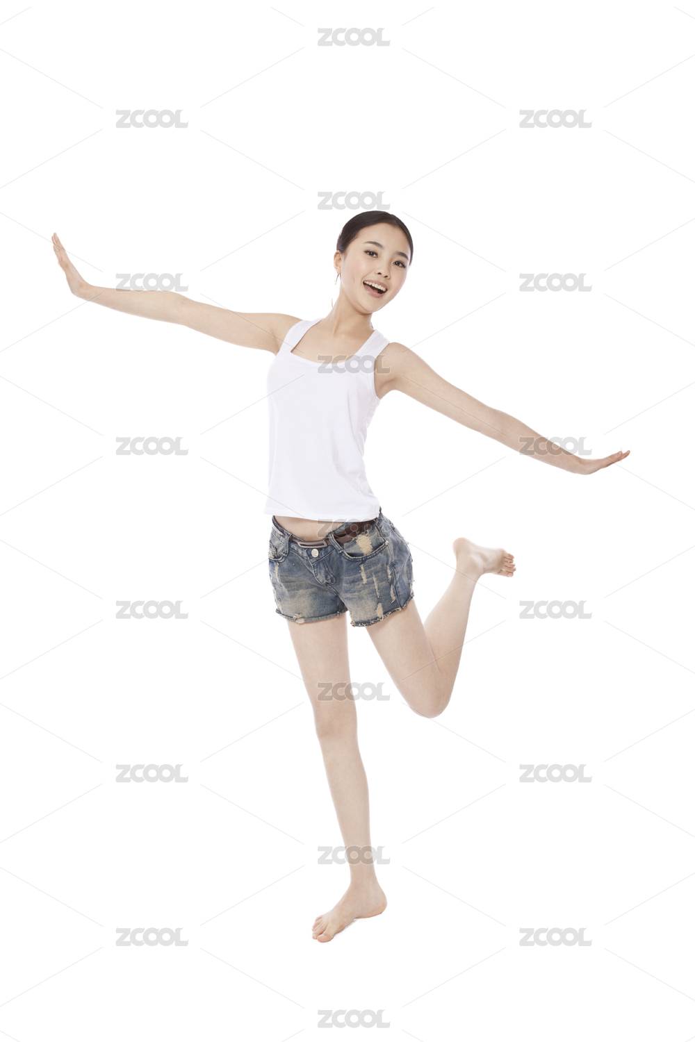 东方时尚的年轻女孩跳