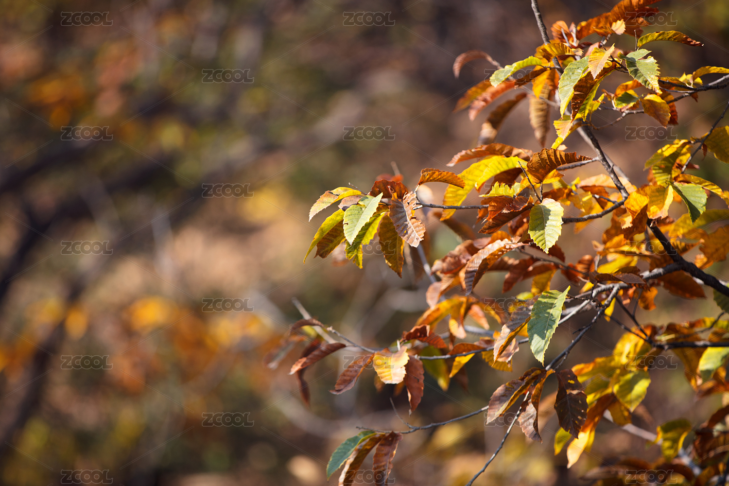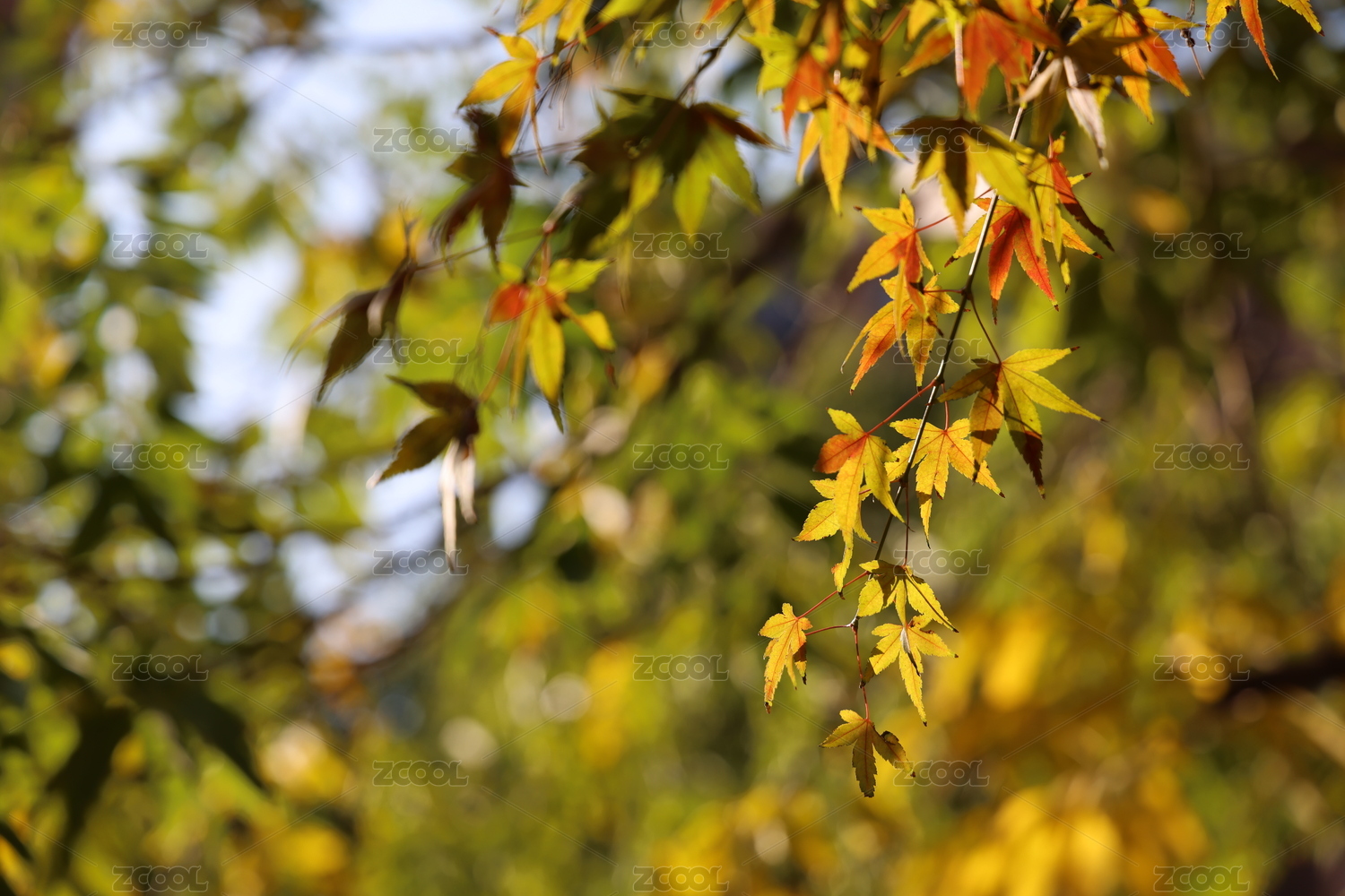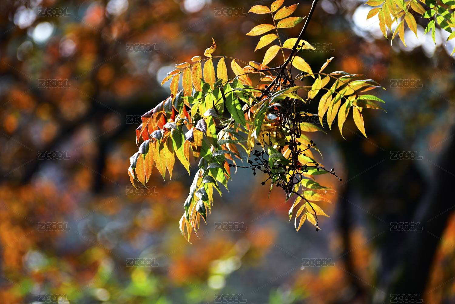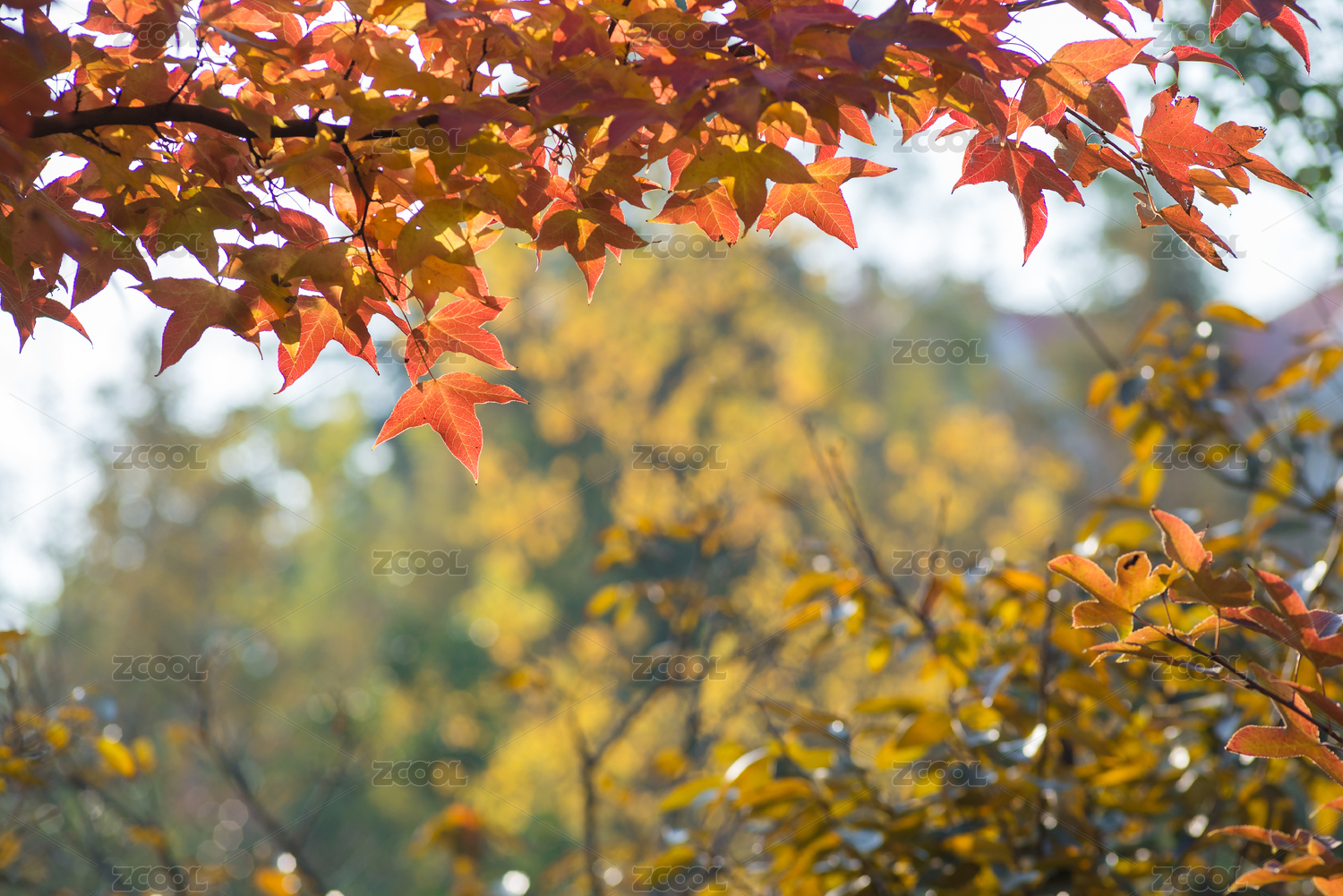 深色背景前逆光下金黄色的秋叶秋天背景素材