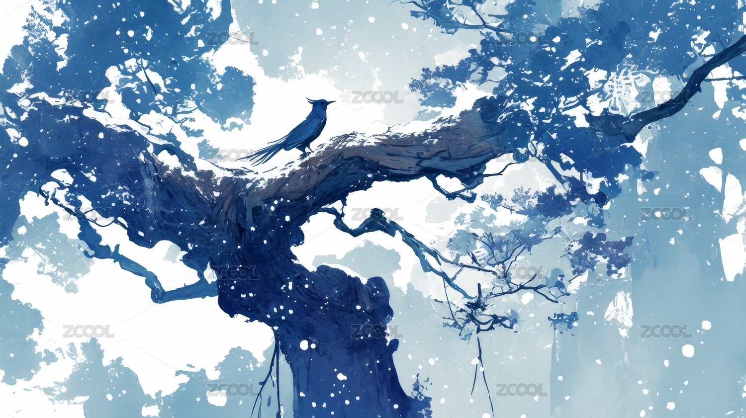 雪中枝头栖鸟图