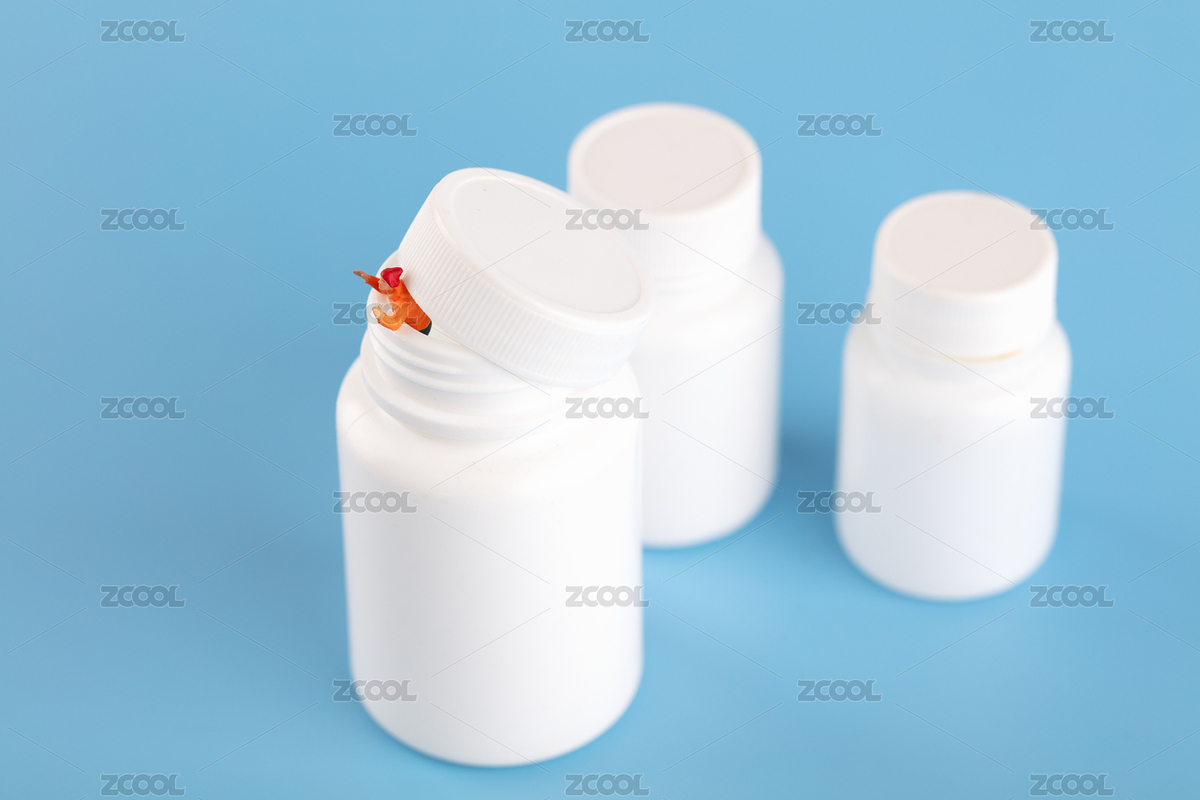 爬出来,药瓶,药物,瓶子,出来,露出来,露头,蓝背景,医疗,医药