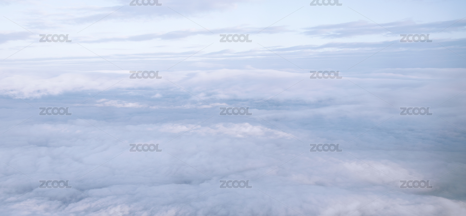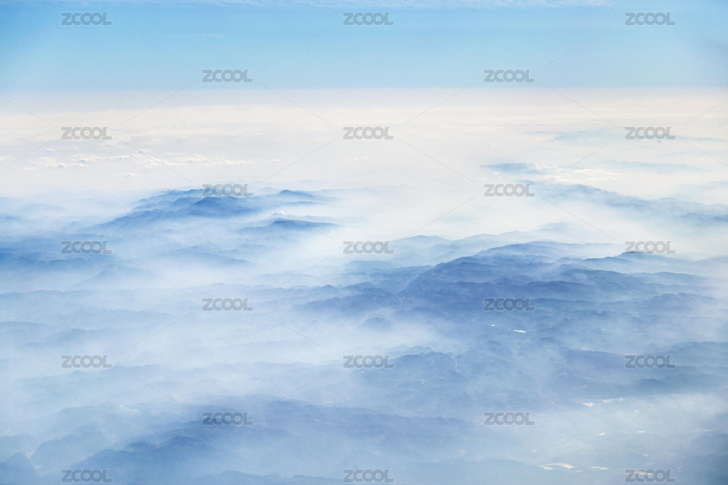 飞机上窗外的白色云朵和层峦叠嶂的群山