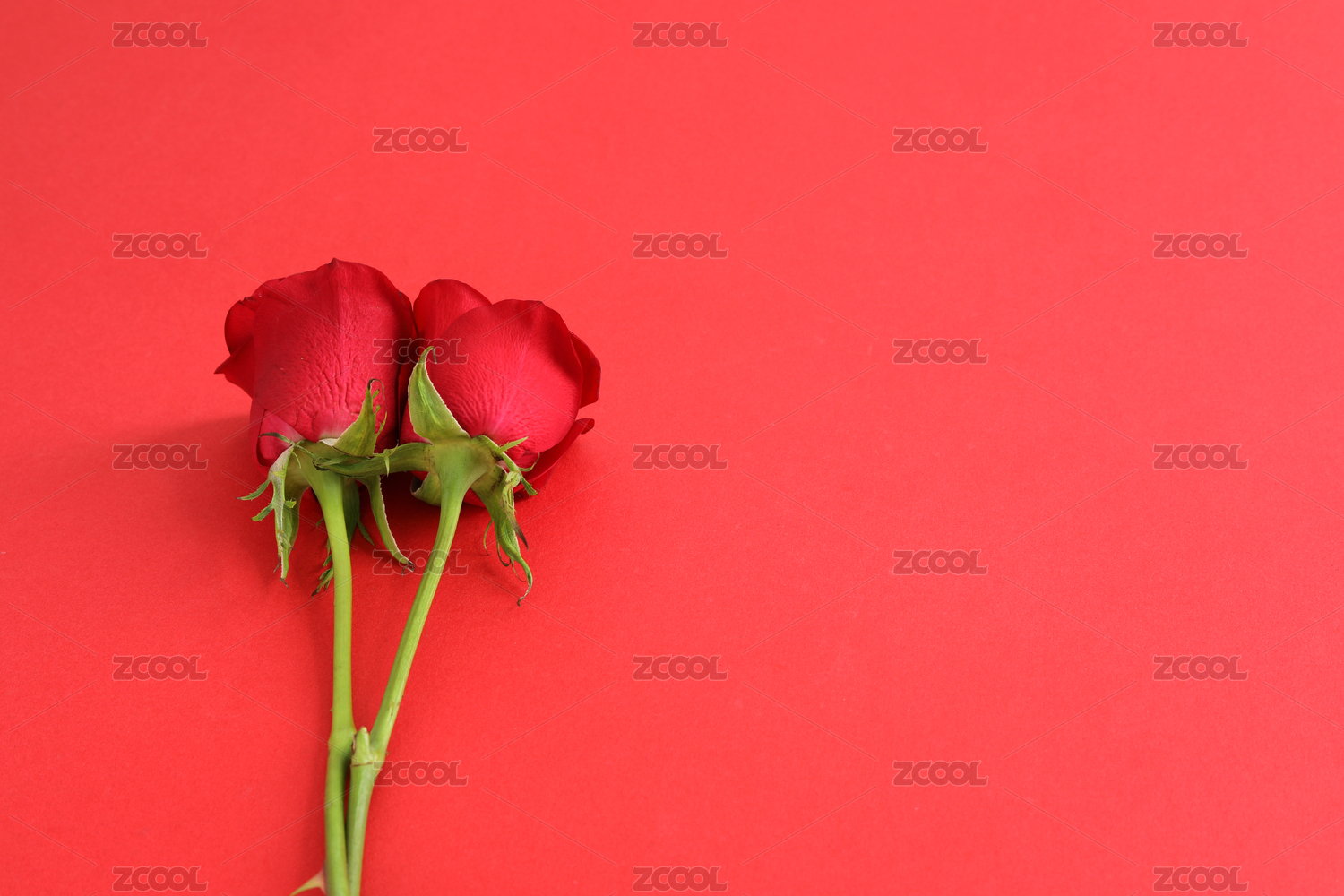 红色背景上的一簇七夕节情人节鲜花红玫瑰花