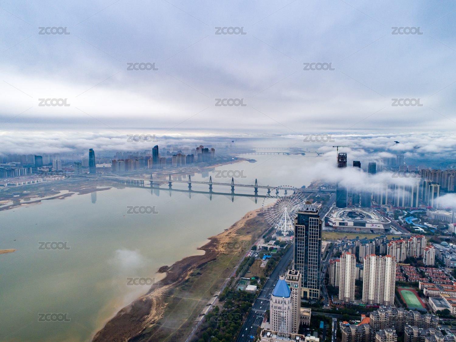 天际线,市,多雾路段,市容,摩天大楼,云天空,鸟瞰图,市中心,建筑风格,天空
