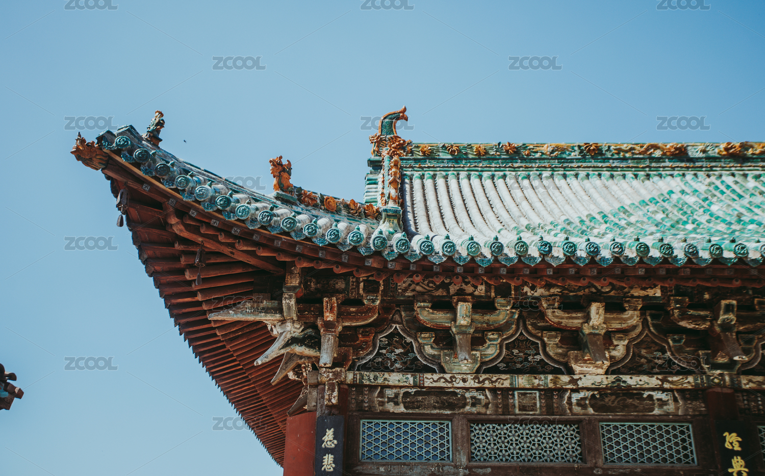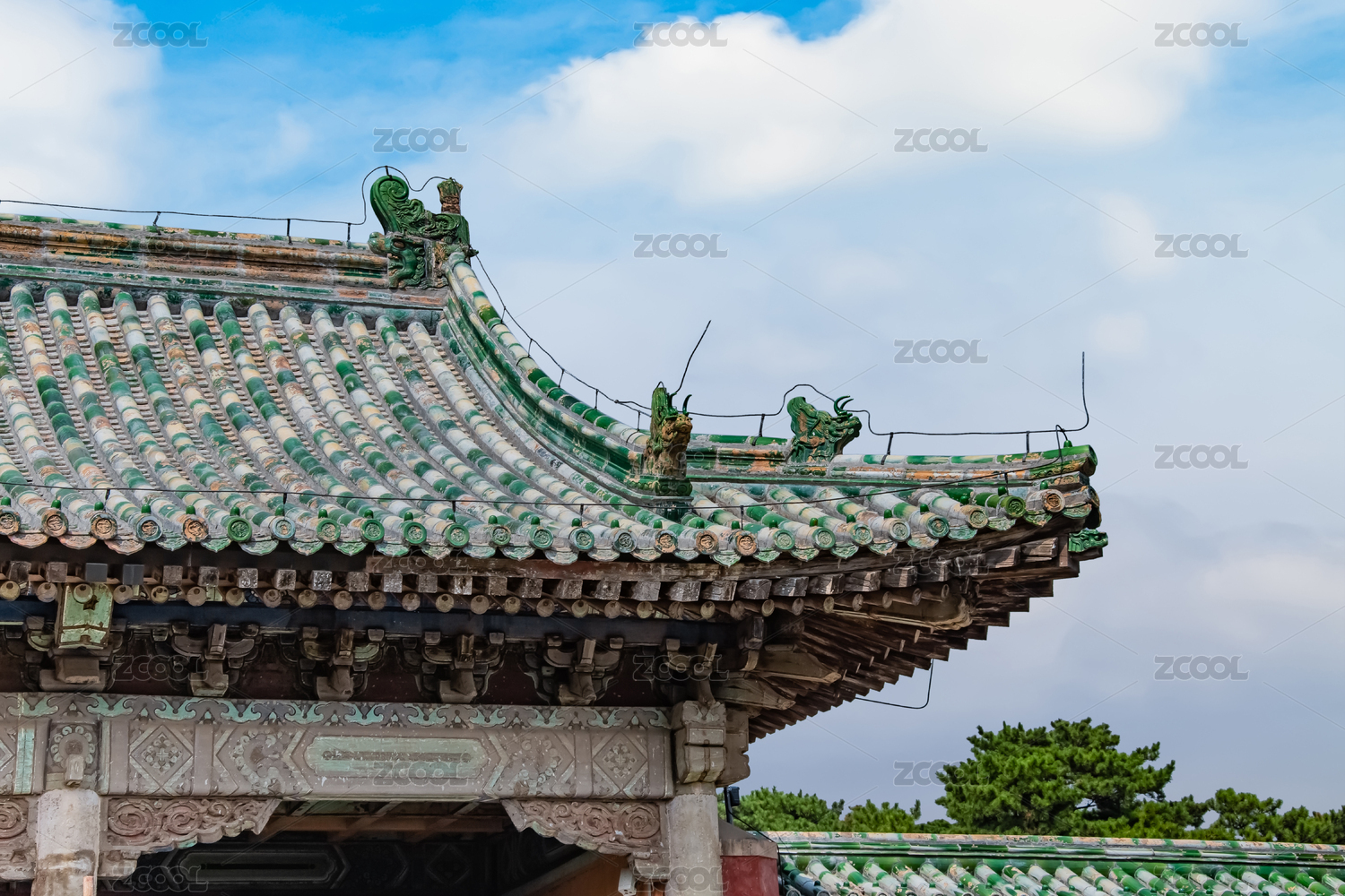 北京宫殿飞檐琉璃瓦特写