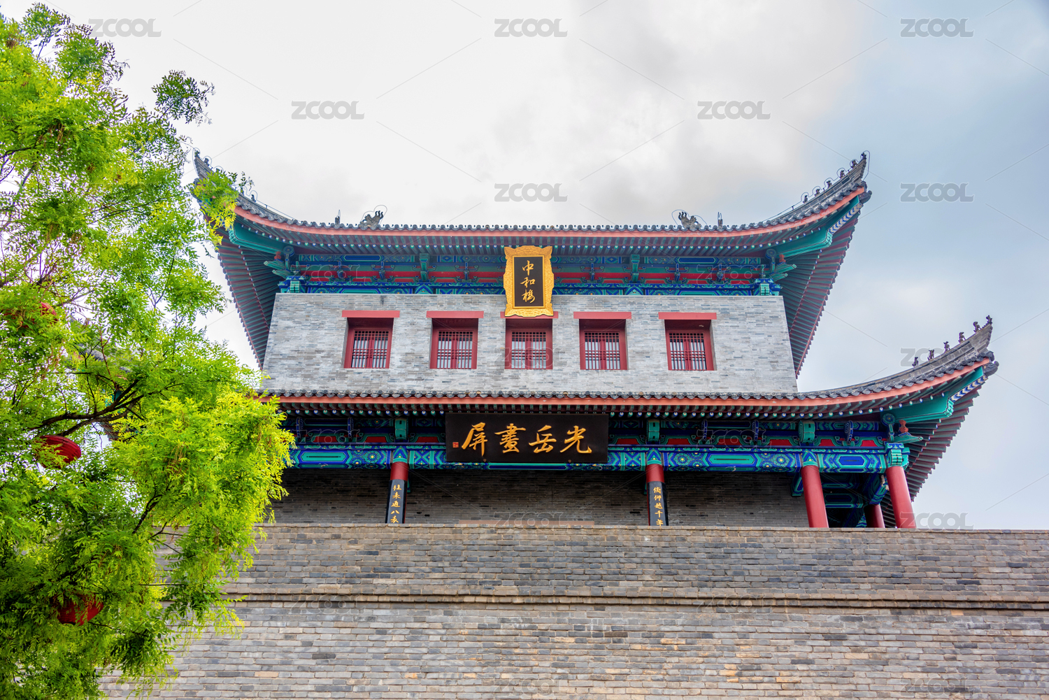 中国河南省浚县明代古城墙西城门楼园林建筑