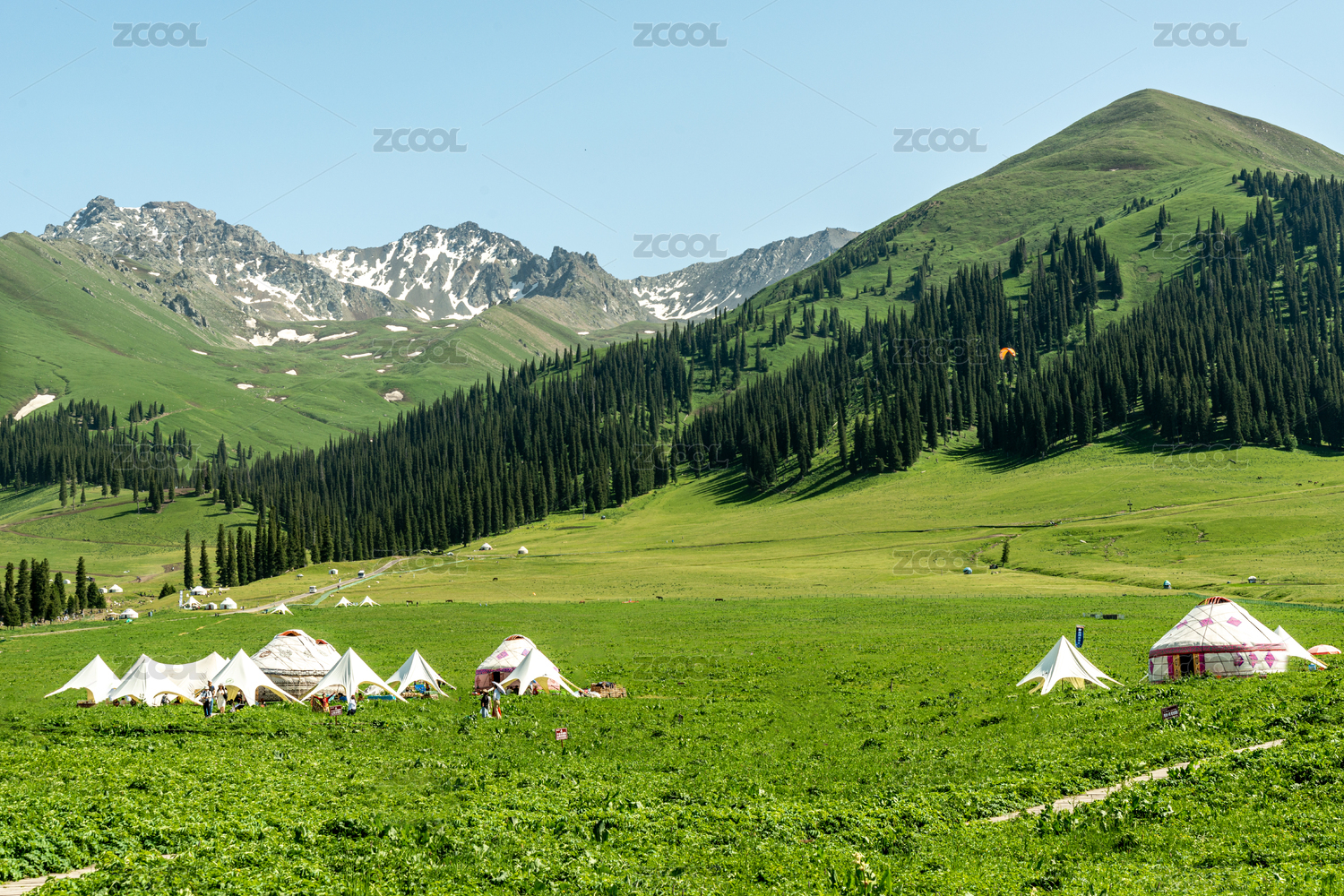 中国新疆独库公路沿线风光雪山草原蒙古包