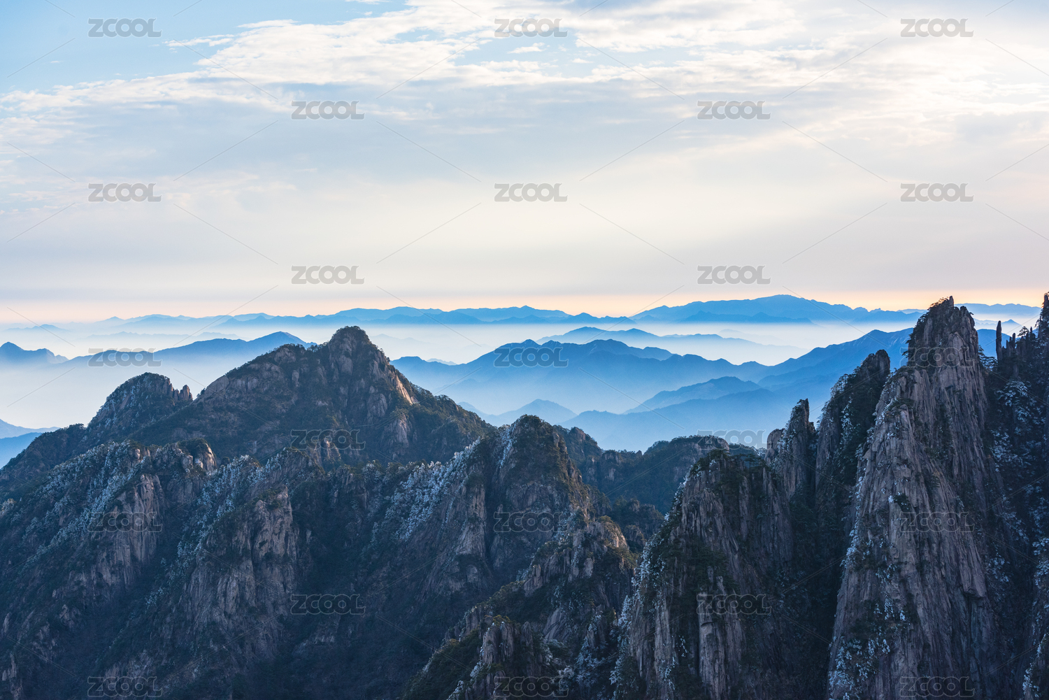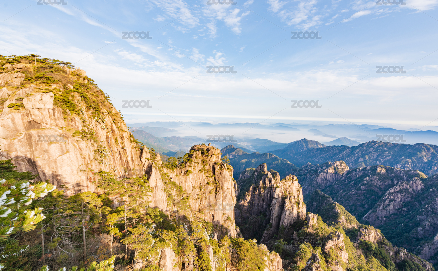 中国安徽黄山冬季晴天早上的猴子观海景点