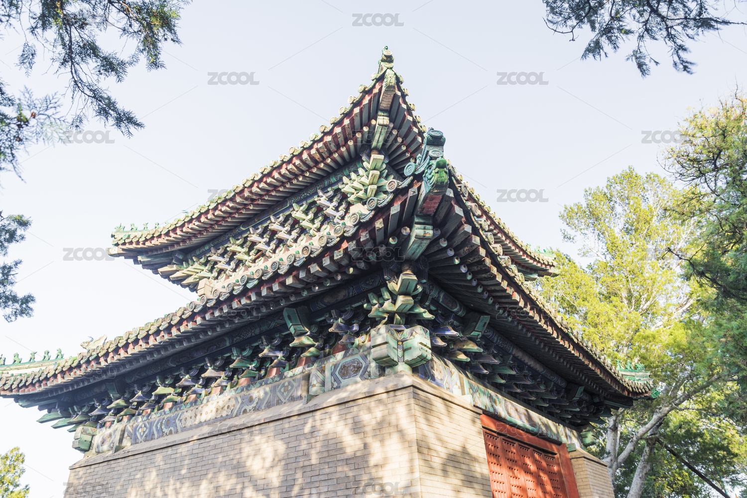 秋天蓝天下的北京颐和园公园的古亭台楼阁建筑