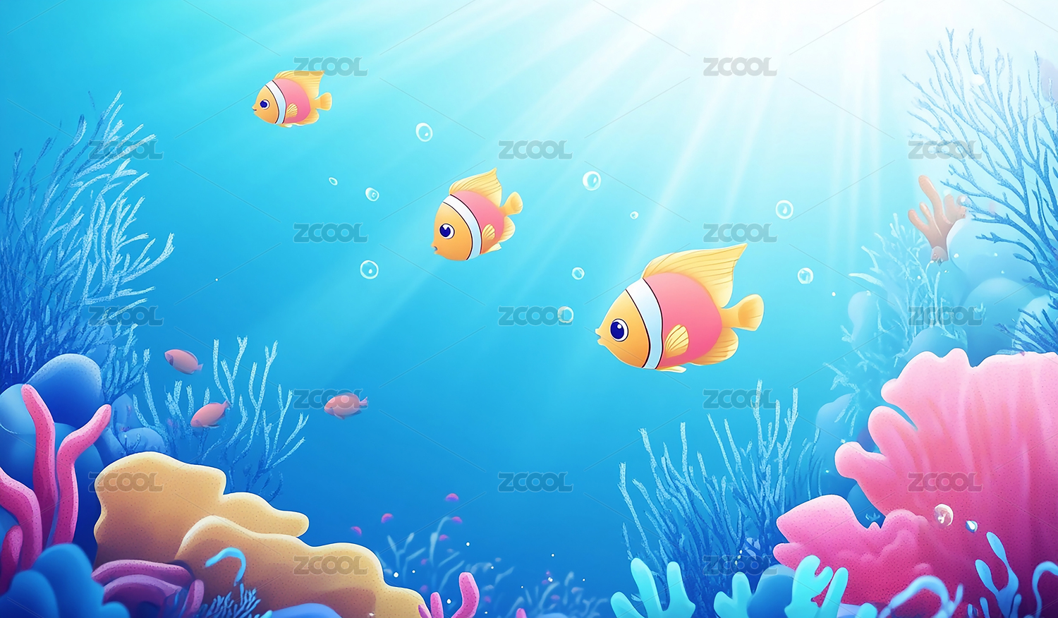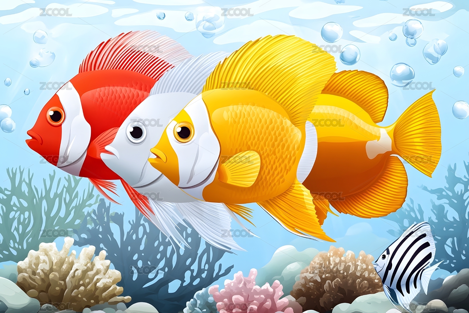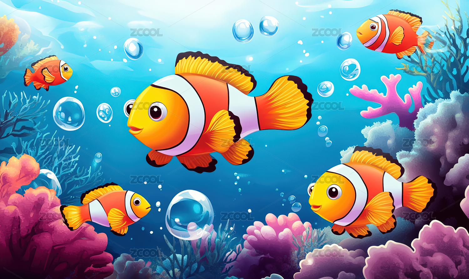三维,立体,3D,插画,背景,壁纸,海洋,鱼类,小丑鱼,珊瑚