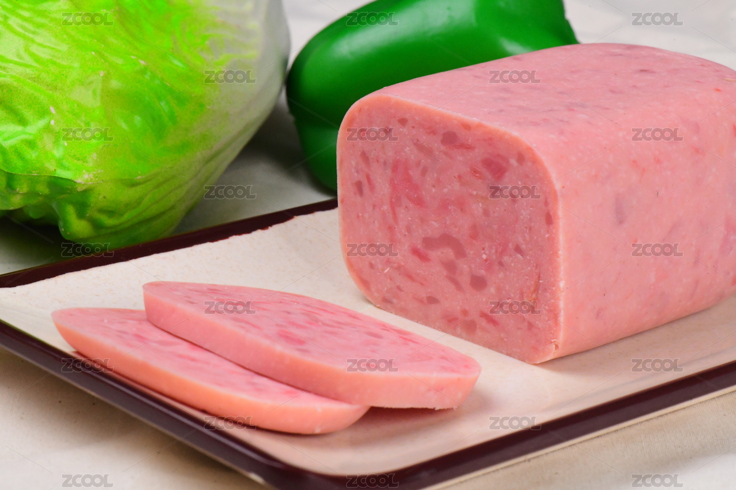 木桌背景新鲜食材新鲜火锅食材火腿肉