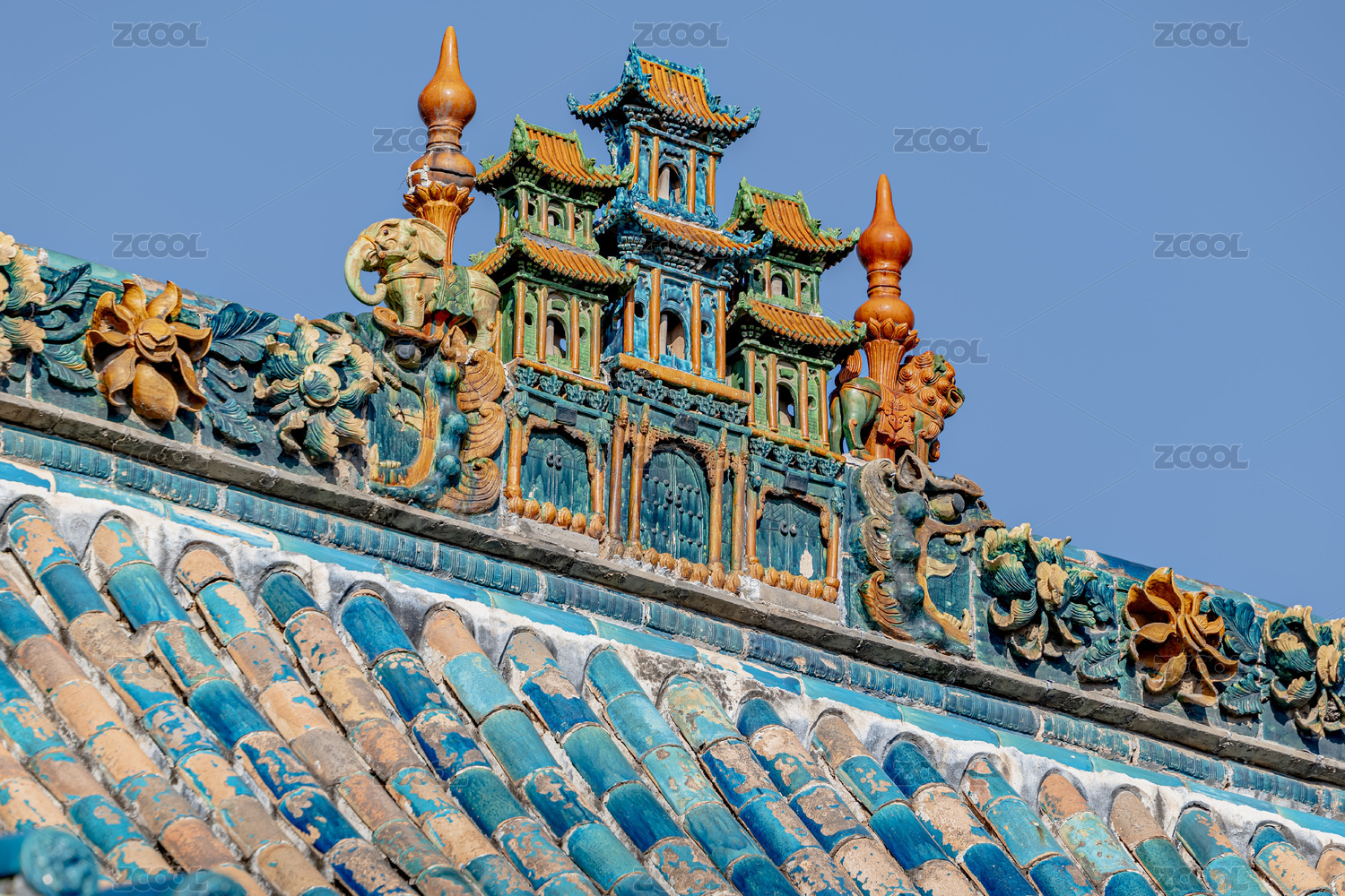 山西榆次老城城隍庙屋脊琉璃构建鸱吻