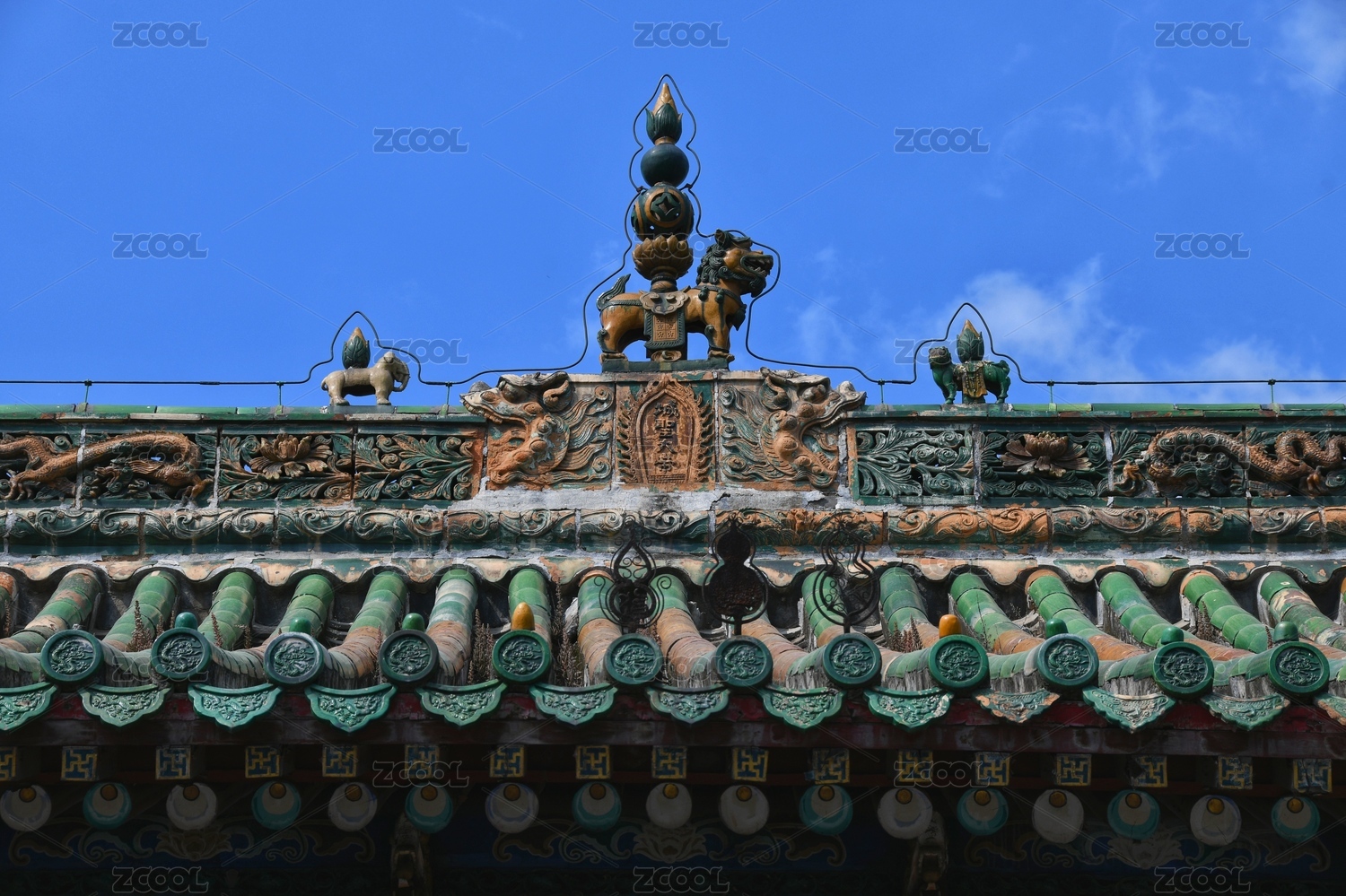 中国山西晋中平遥古城二郎庙屋顶装饰