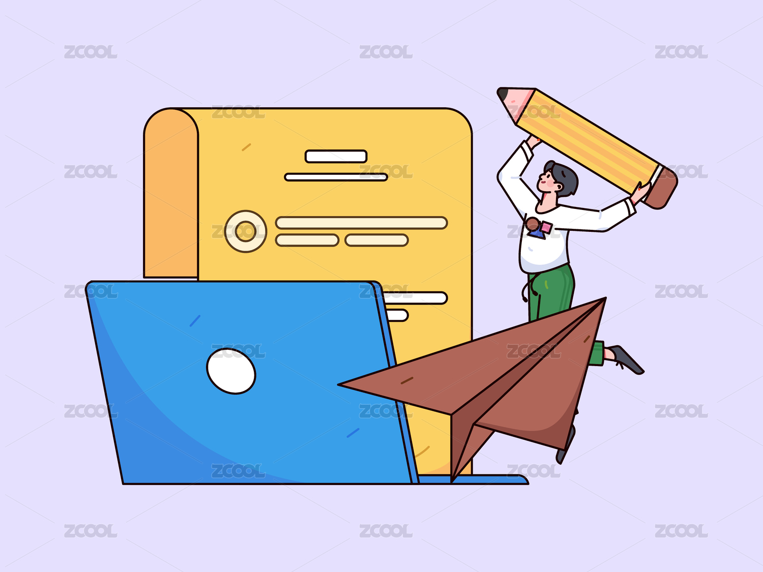 卡通蓝色手绘职场求职白领晋升闪屏海报插画