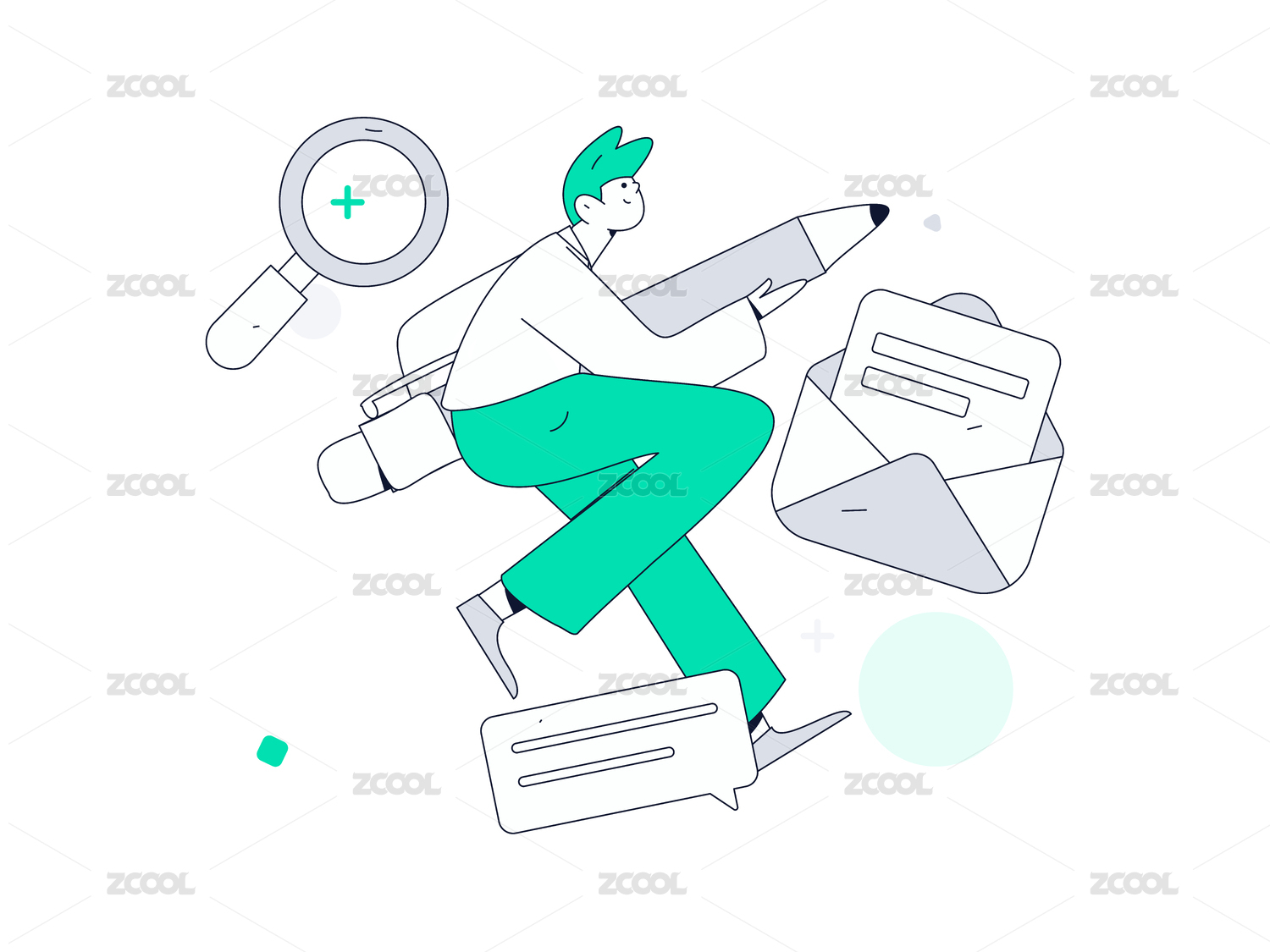 人物上班工作迟到奔跑插画招聘面试活动海报