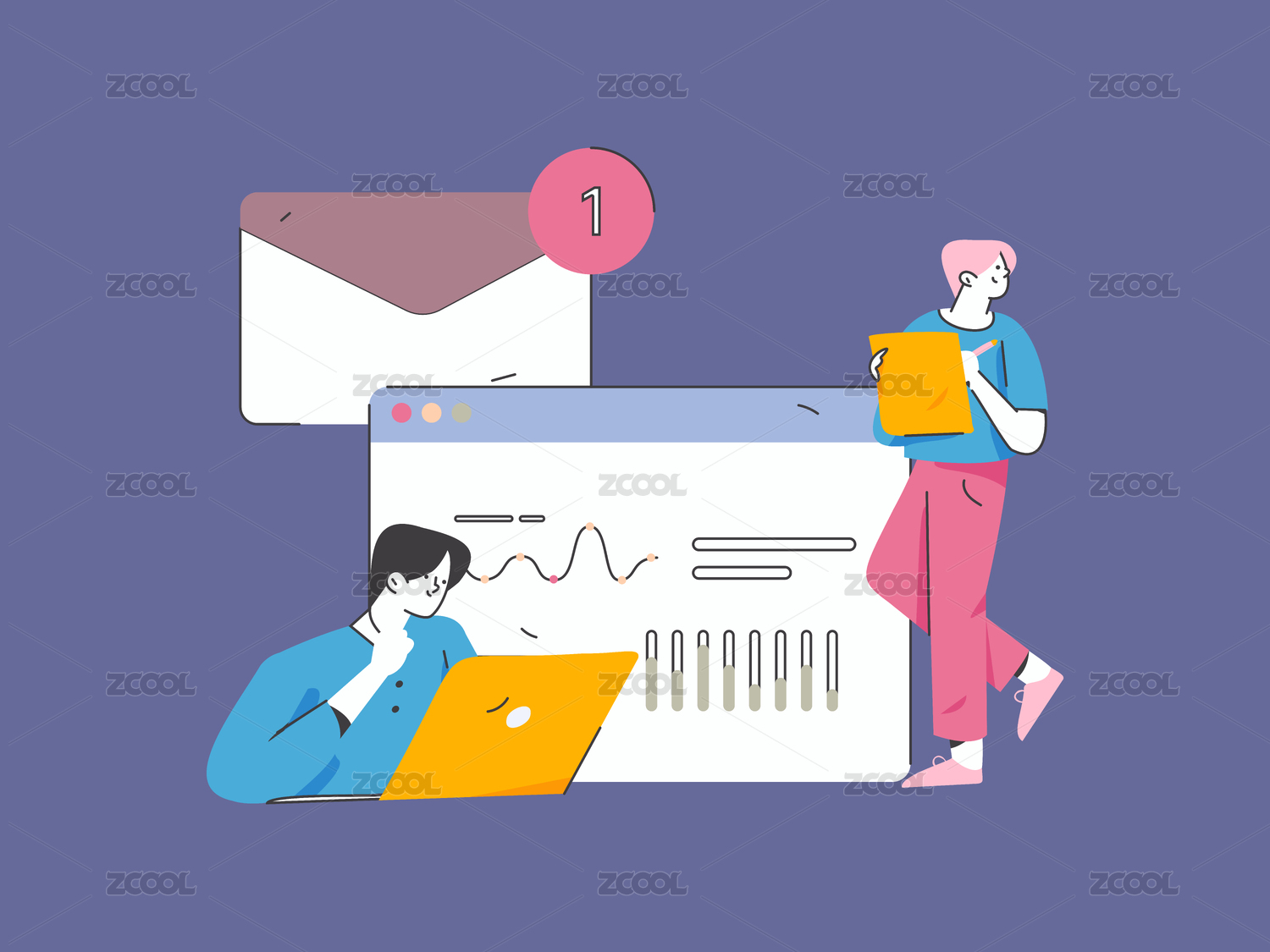 虚拟的人物社交沟通概念商业扁平矢量手绘插