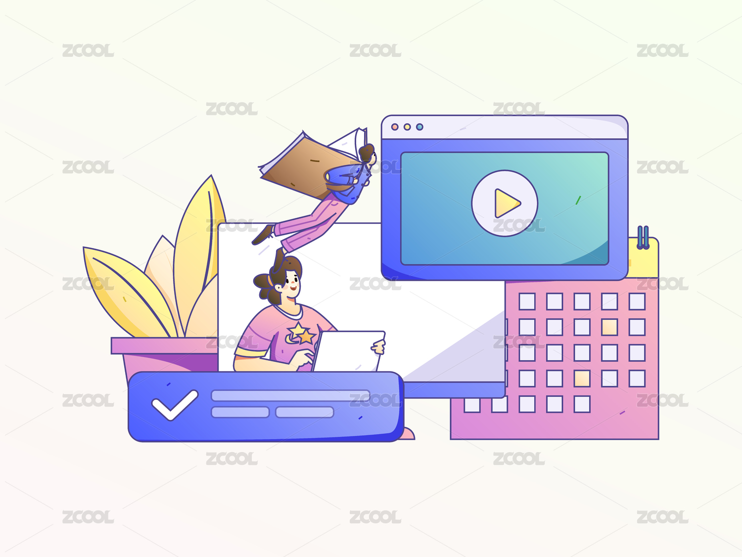组件化设计 互联网协作的员工高效完成网页内容完成 潮流矢量扁平人物