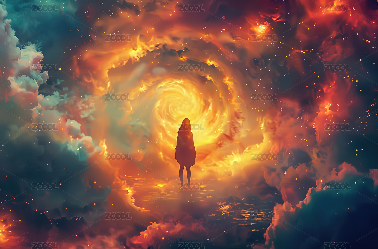 AIGCFG01,黄昏,夕阳,天空,风景,插画,星星,流星,日出,日落