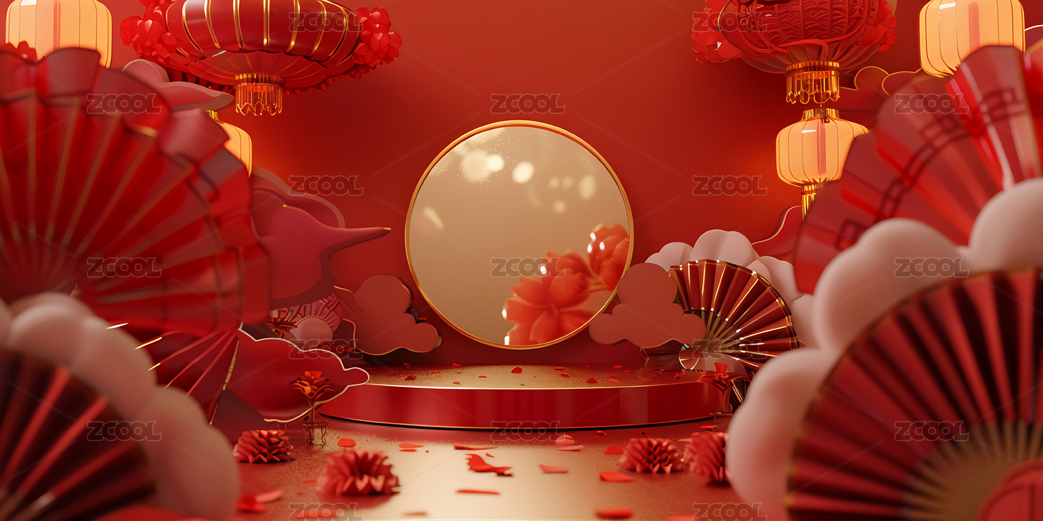 新年春节电商促销中国风红色展台背景