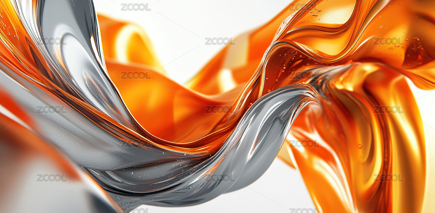 抽象波浪流动的蓝橙混合液体