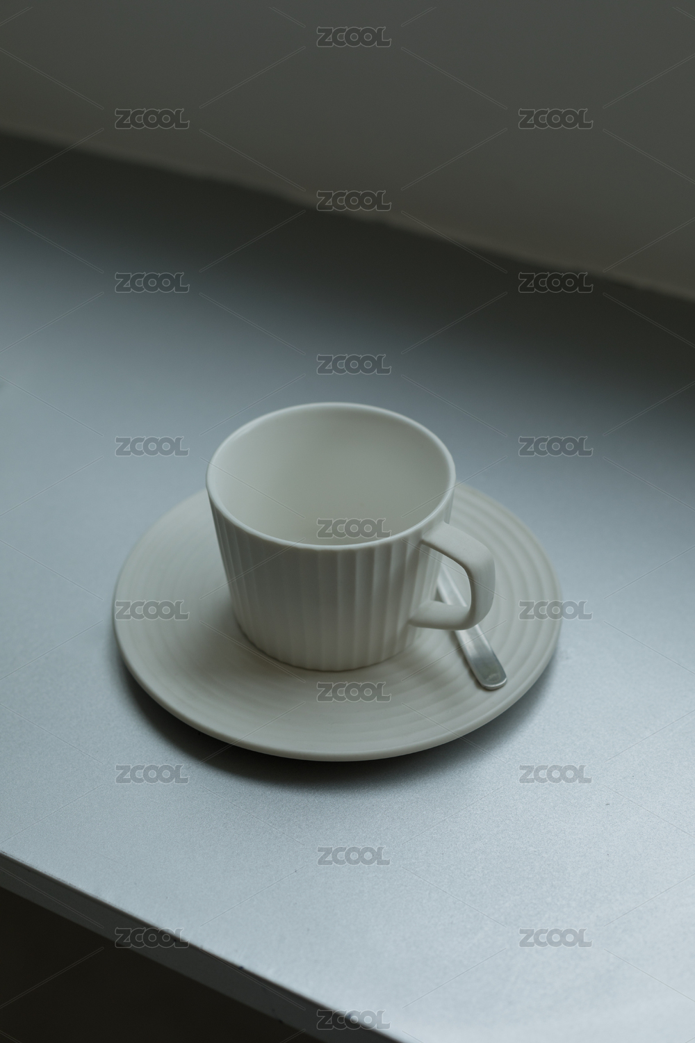 洁白无瑕的骨瓷咖啡杯和杯碟