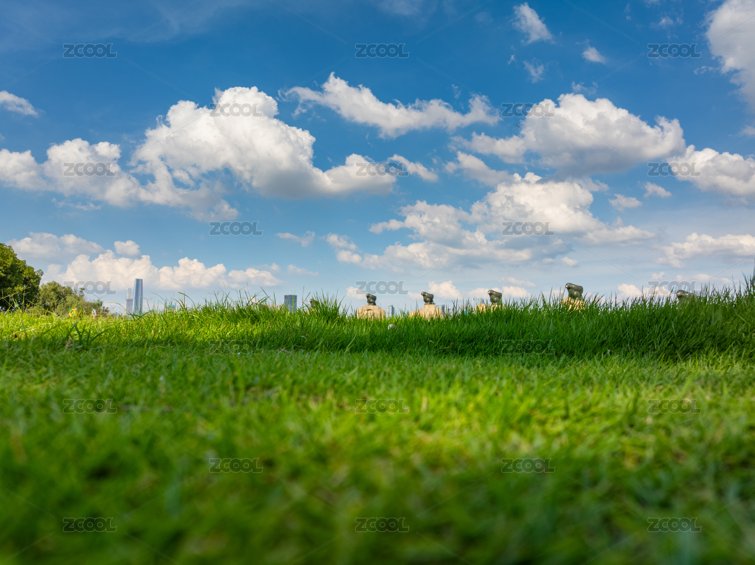 蓝天白云和绿色的草地