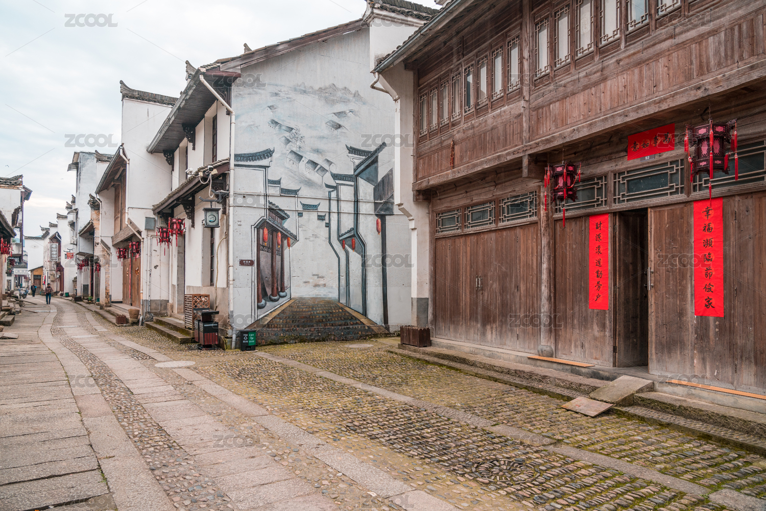 中国江南古镇街道上海老房子复古场景