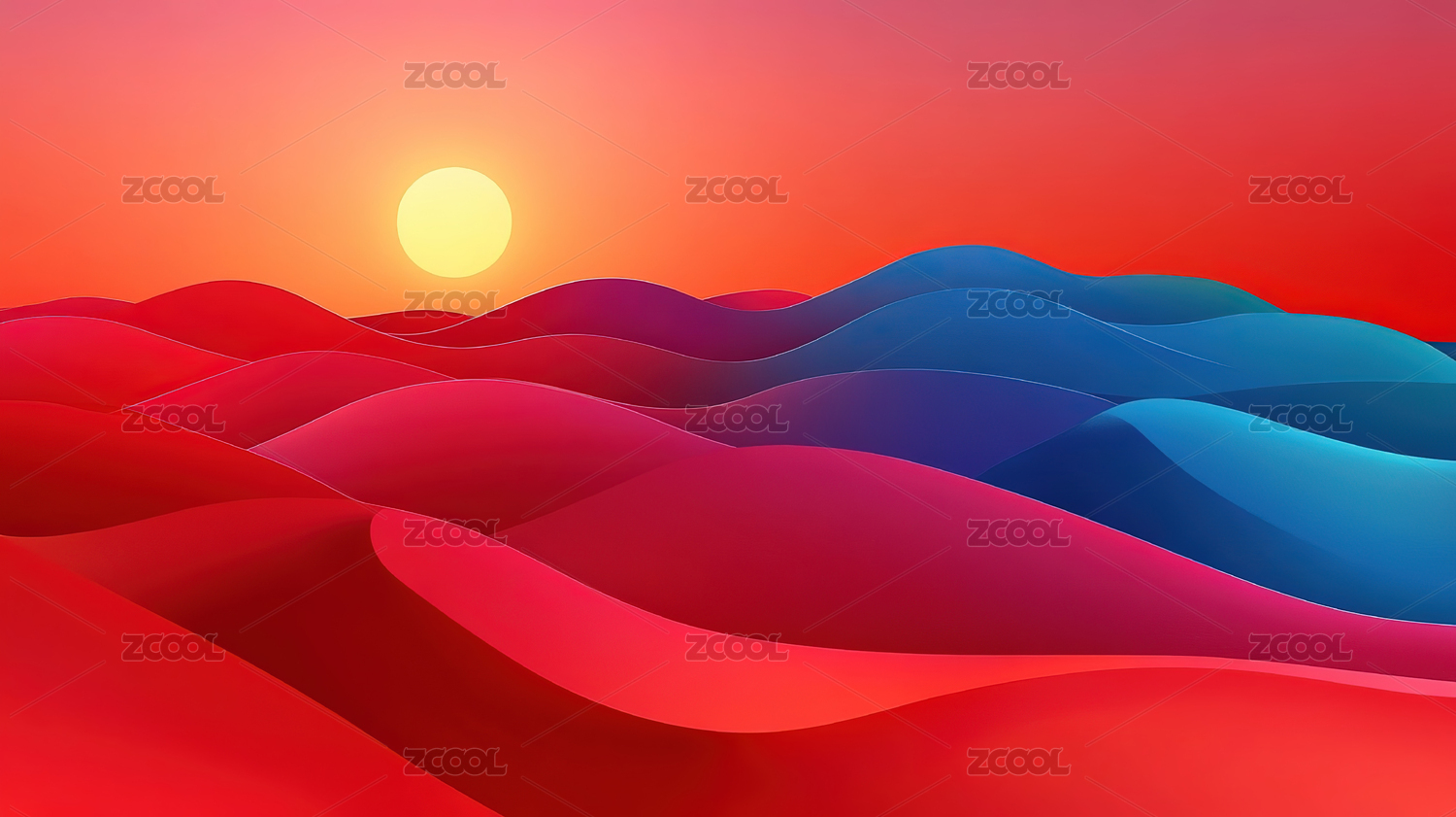 渐变背景上红色沙丘艺术图案