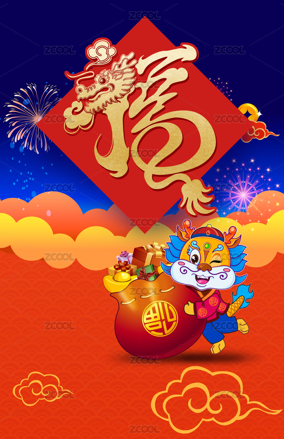 龙,中国龙,春节,拜年,卡通龙,年画,2024年,生肖,辰龙,插画