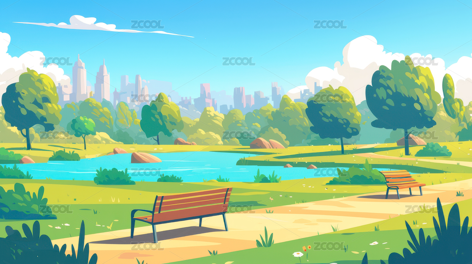 城市公园插画场景