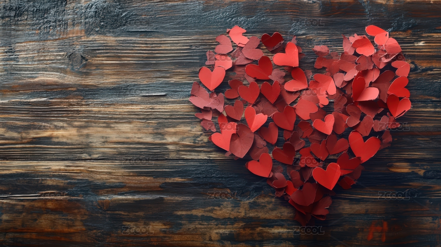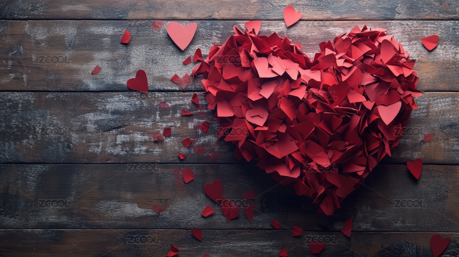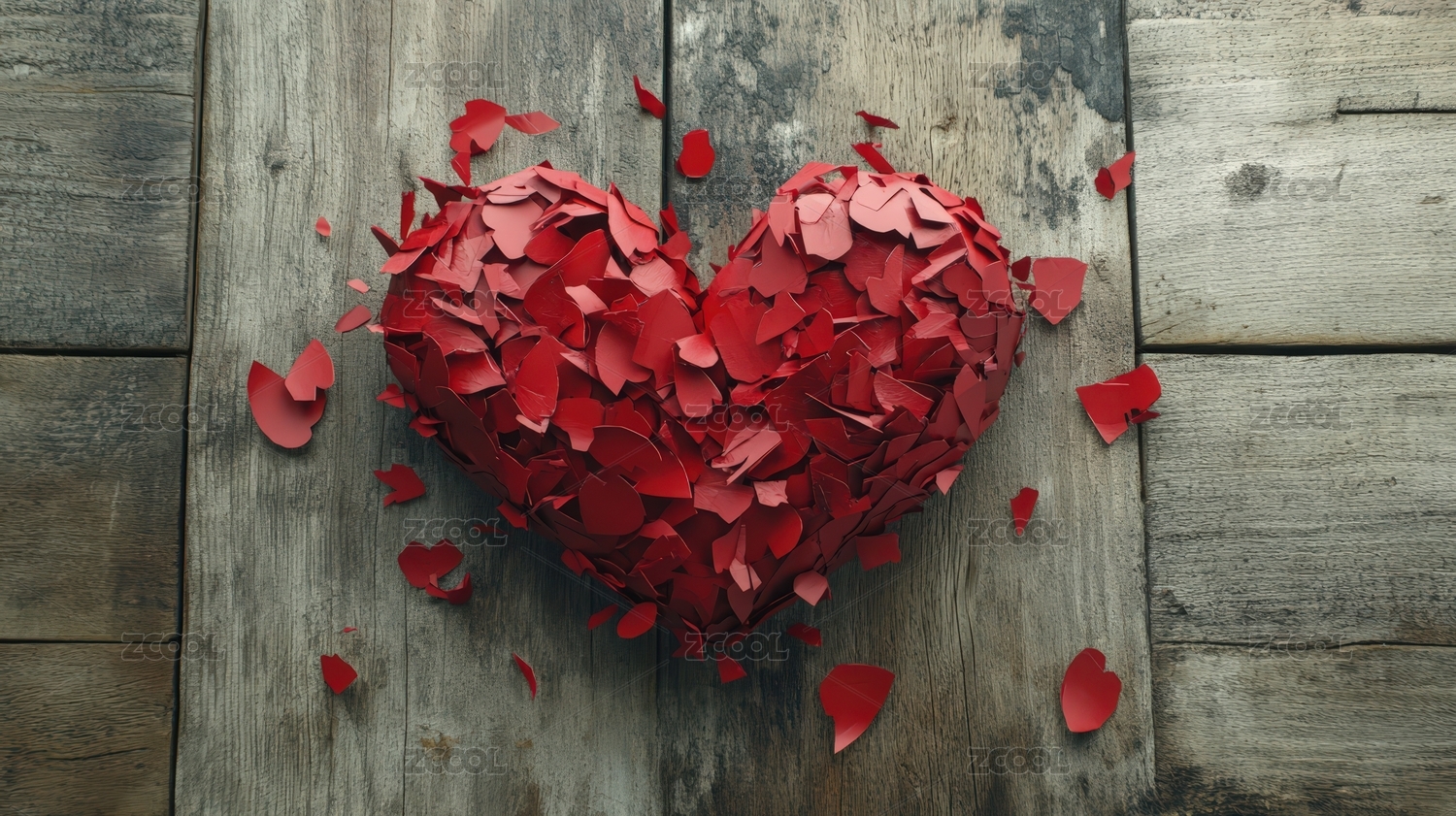 浪漫,纹理,红色,心,破碎,纸片,木头,木板,裂痕,情感