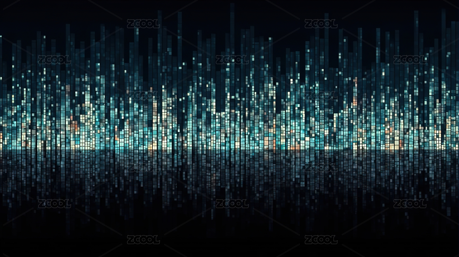 蓝色像素波浪抽象画