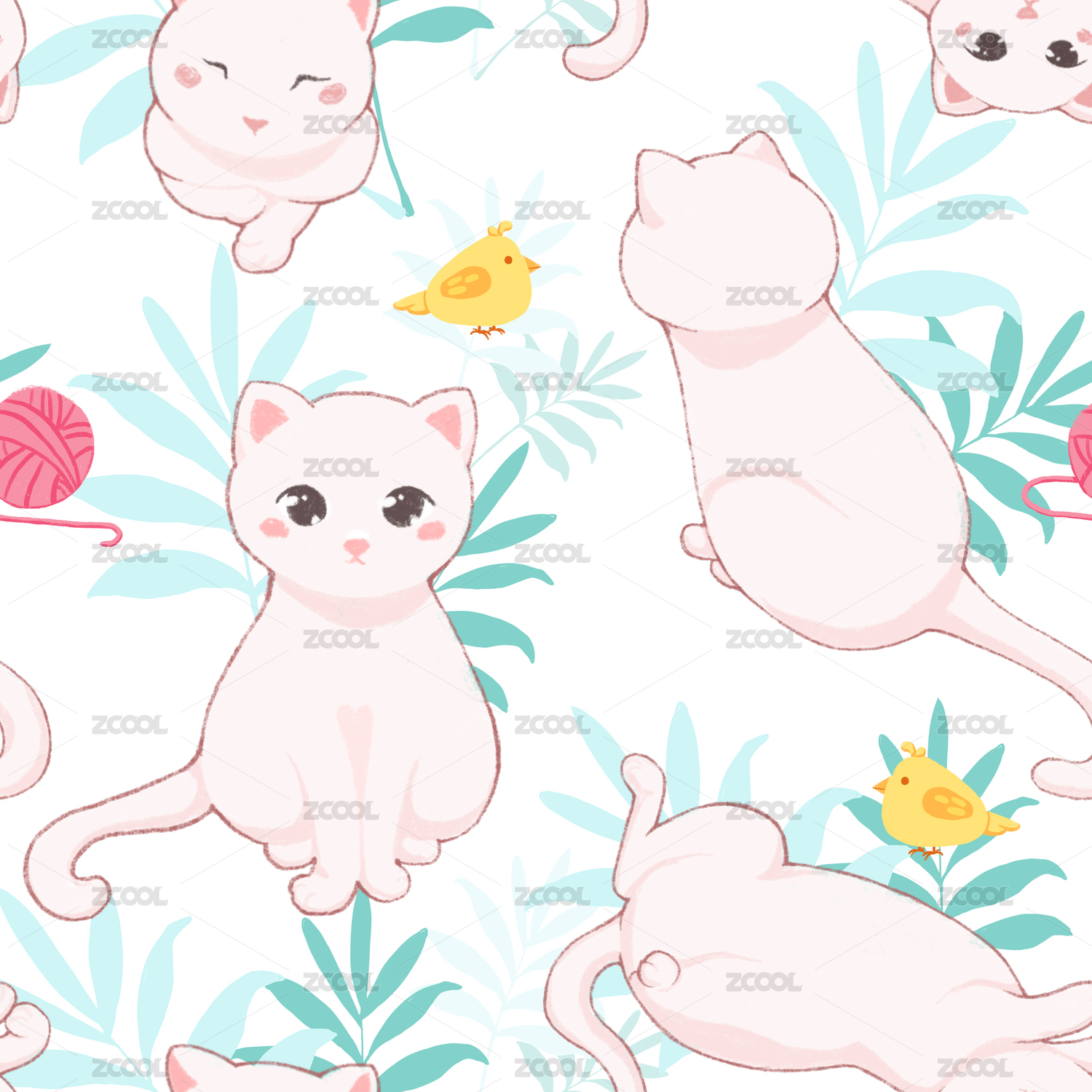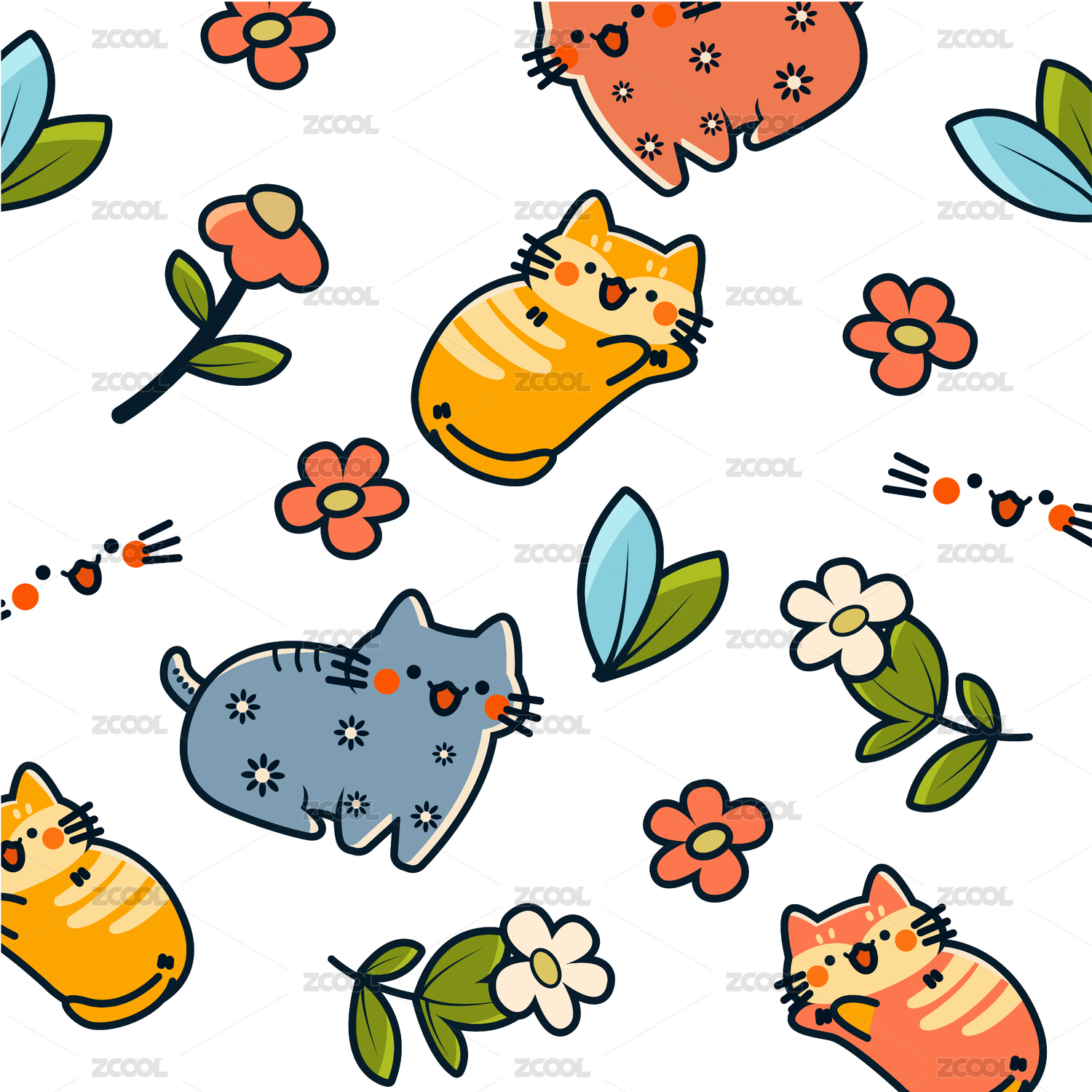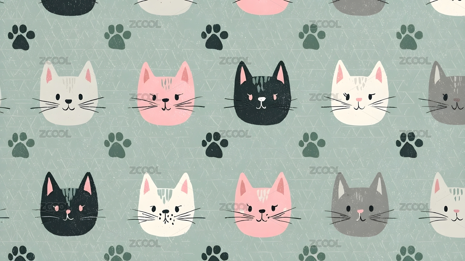 数码波西米亚猫猫图案装饰抽象图形海报背景