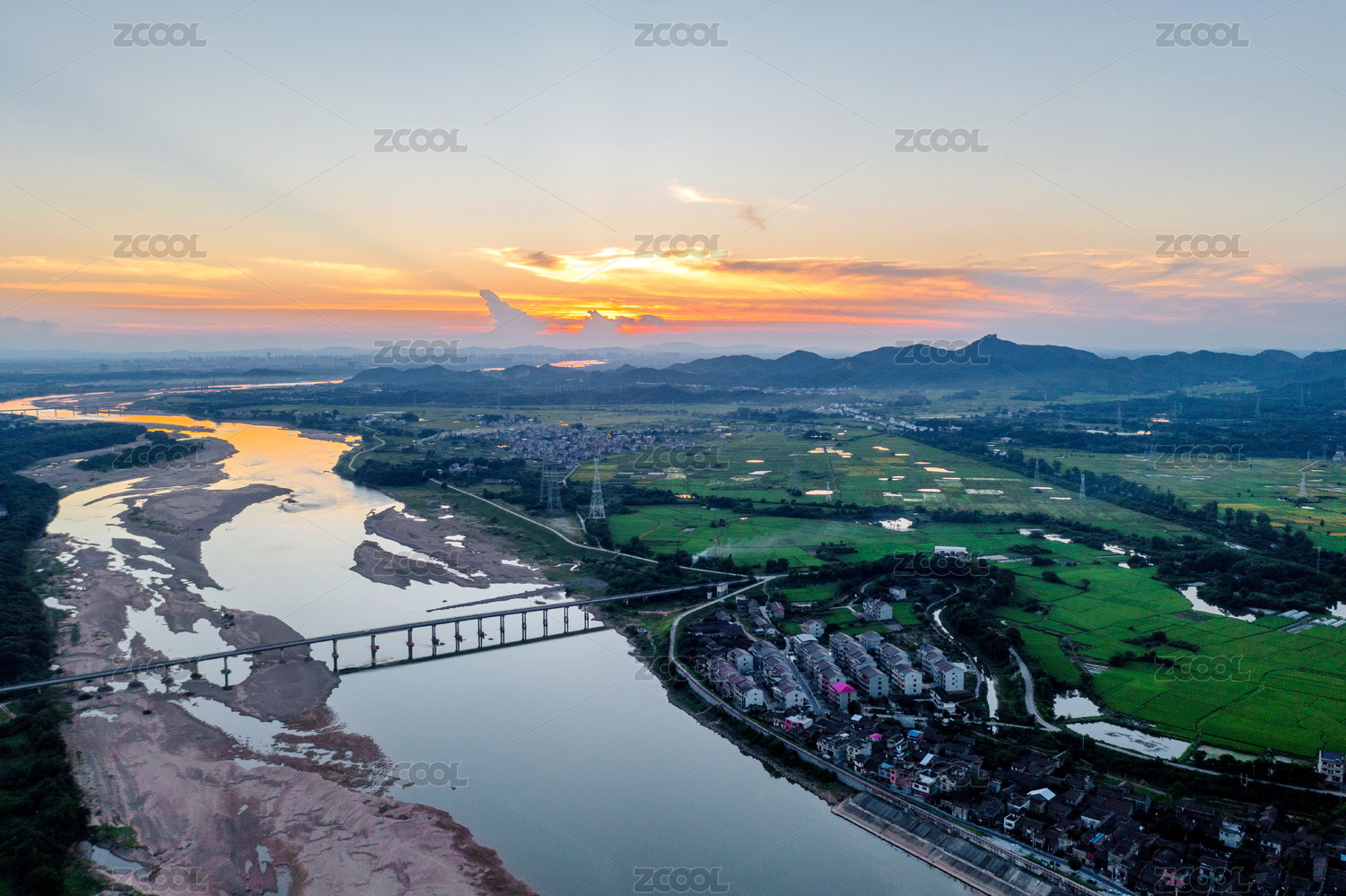 航拍秋日傍晚浙江上虞丁宅乡山村美景