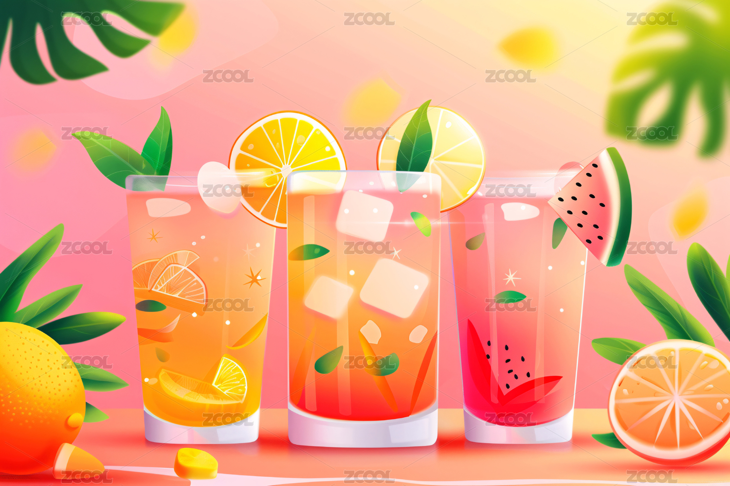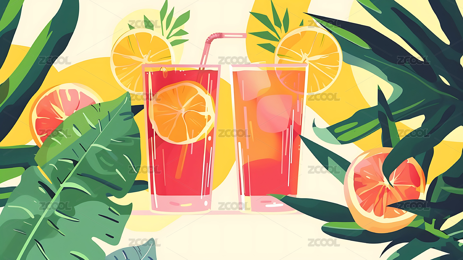 夏季水果茶果汁夏日饮品饮料活动促销插画