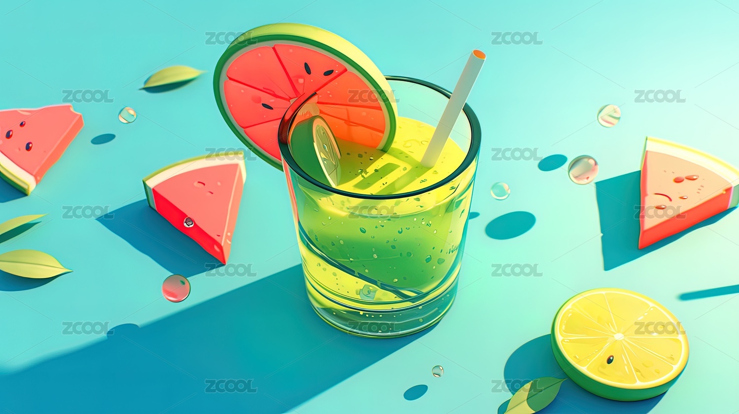夏季水果茶饮料食品健康夏至节气清凉插画