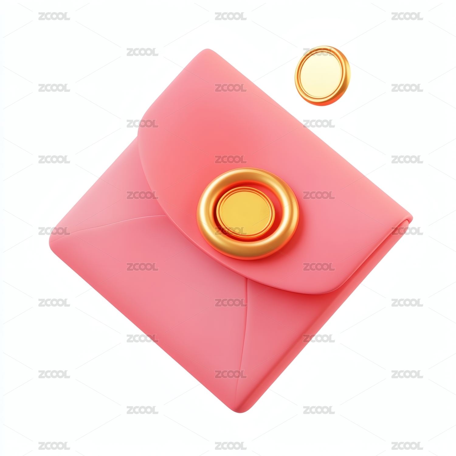 粉色信封配金色圆形装饰