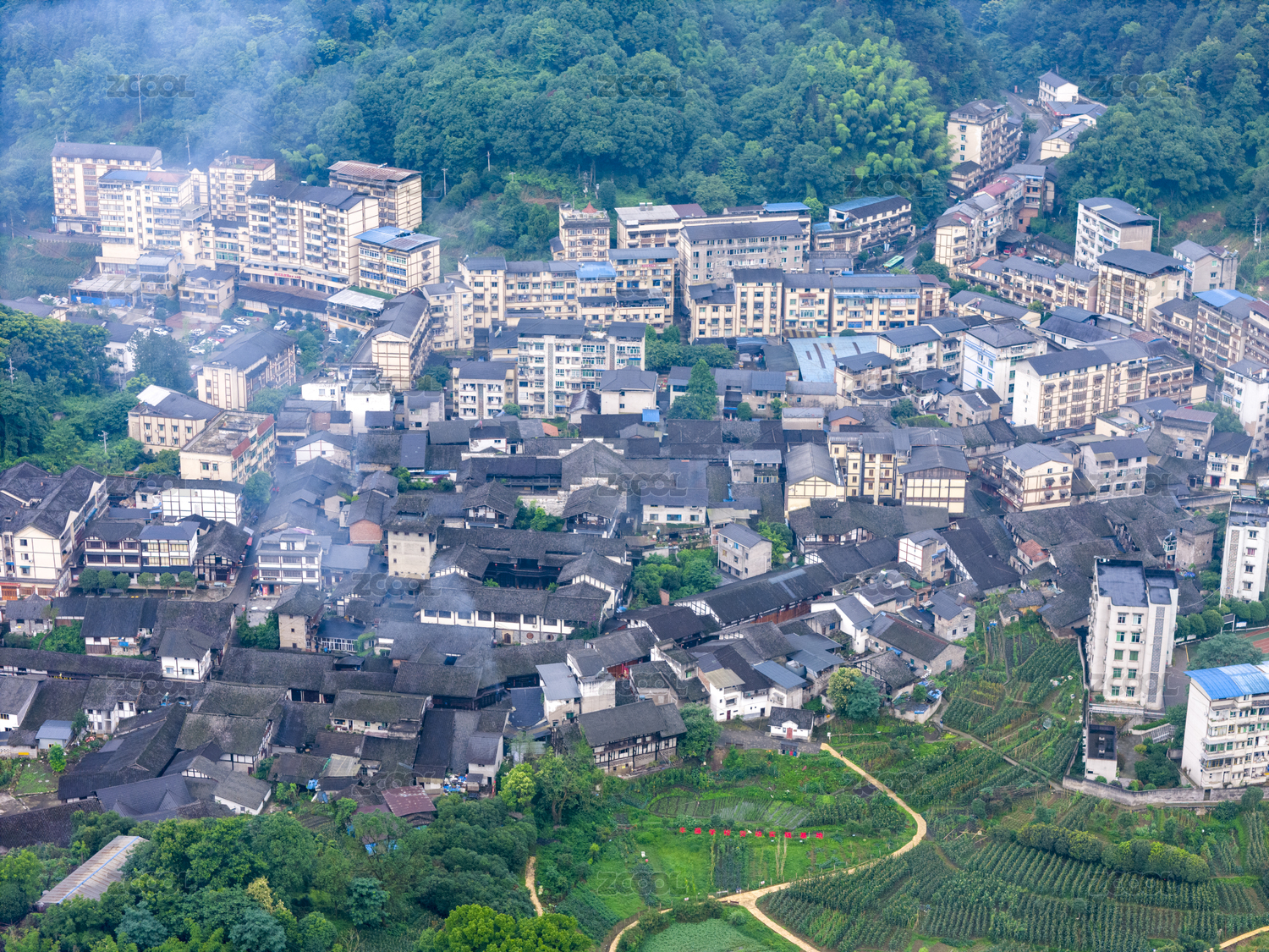 丰盛古镇,十全堂,禹王宫,丰盛镇,巴南区,古镇,碉楼,早晨,雾,烟火