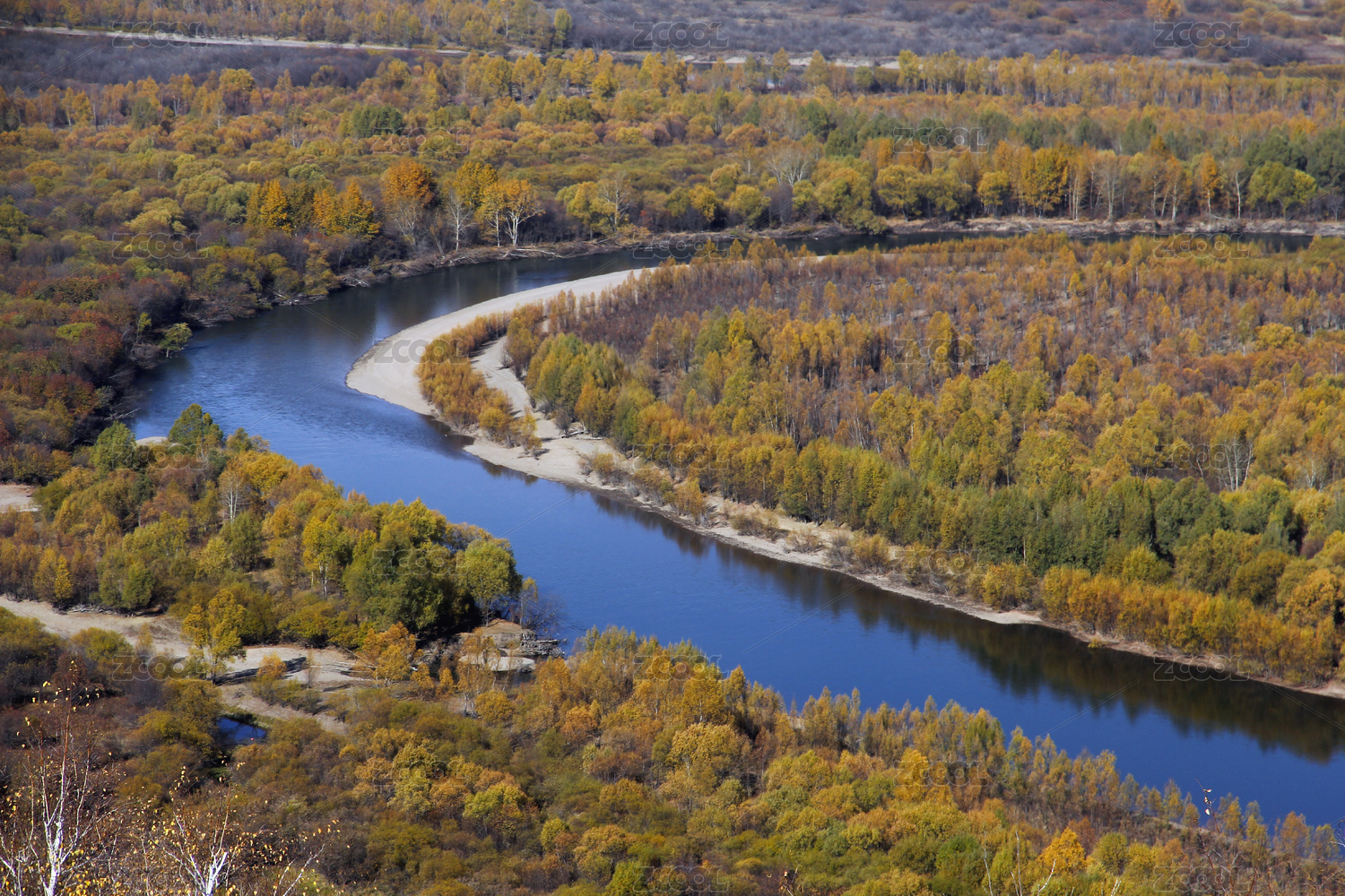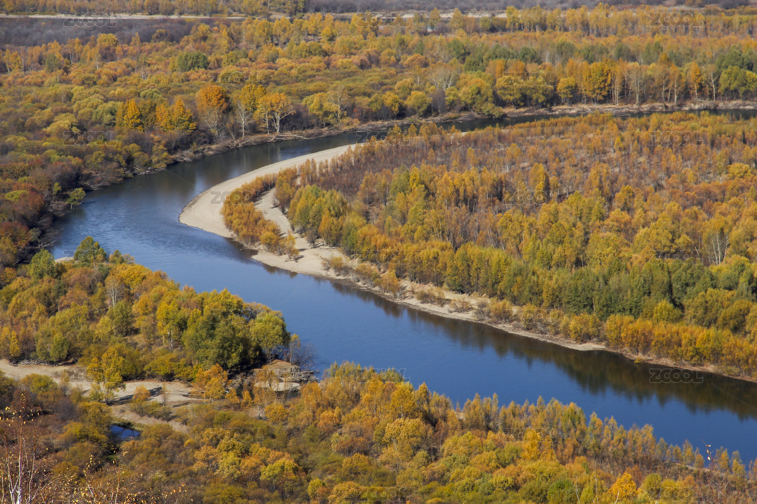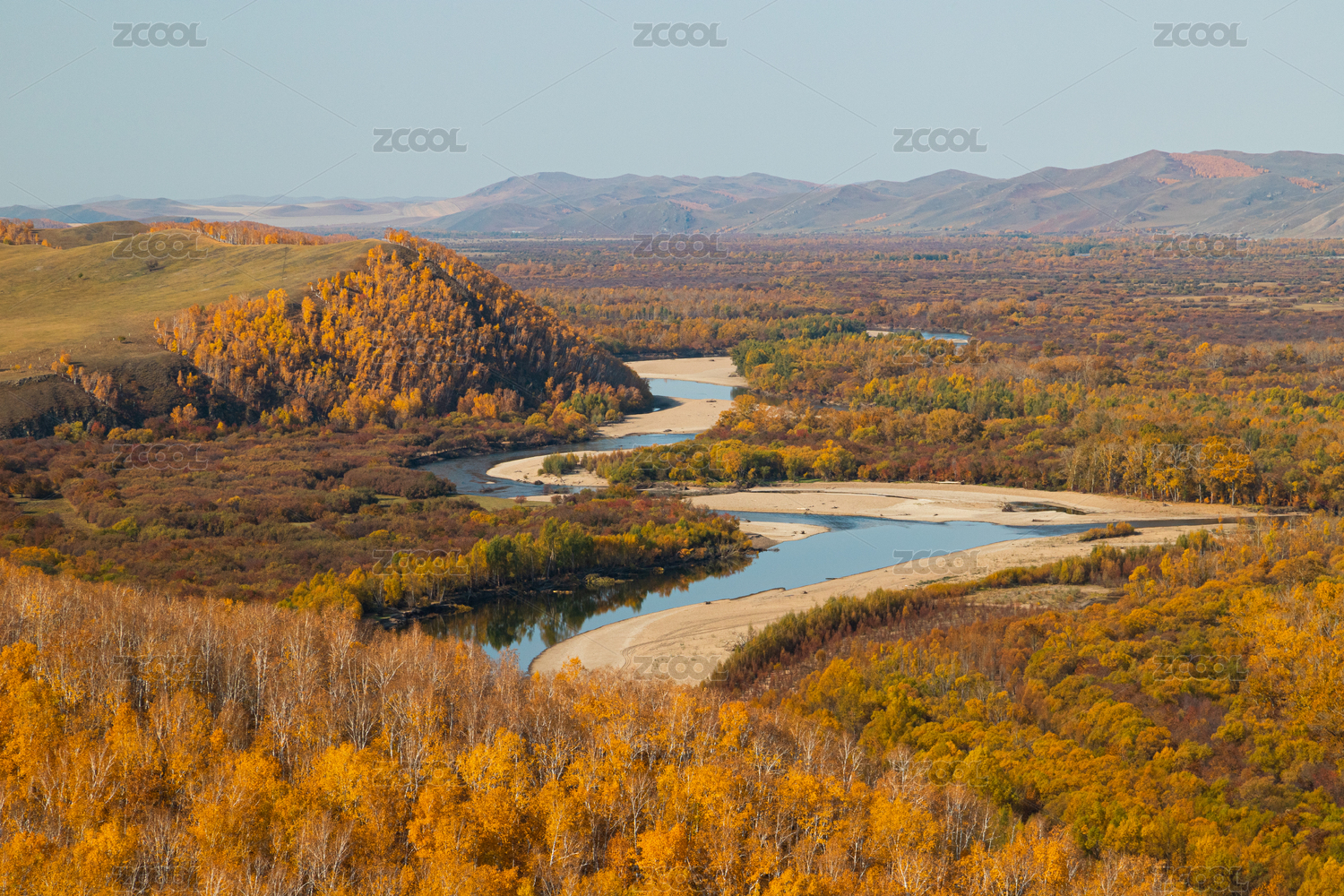秋天美丽的蜿蜒流淌的额尔古纳河