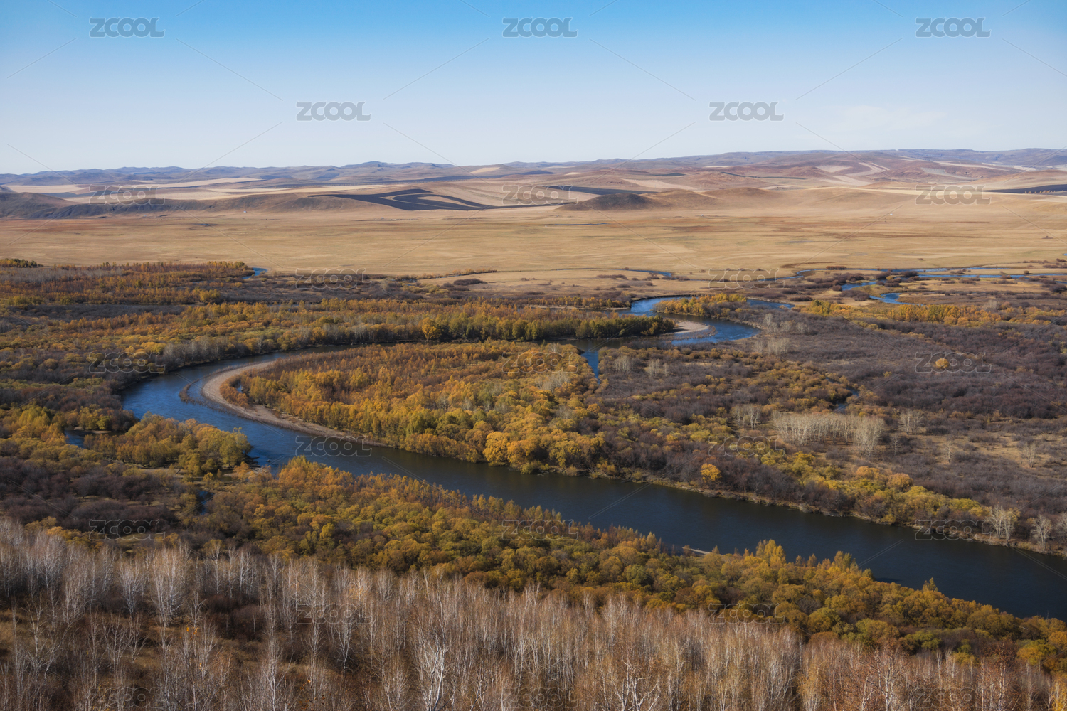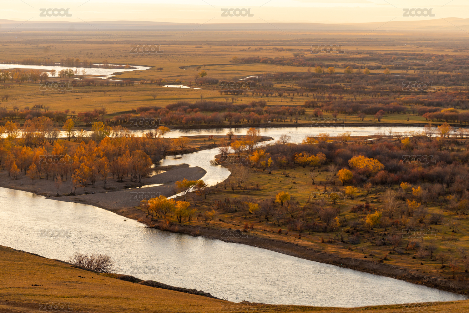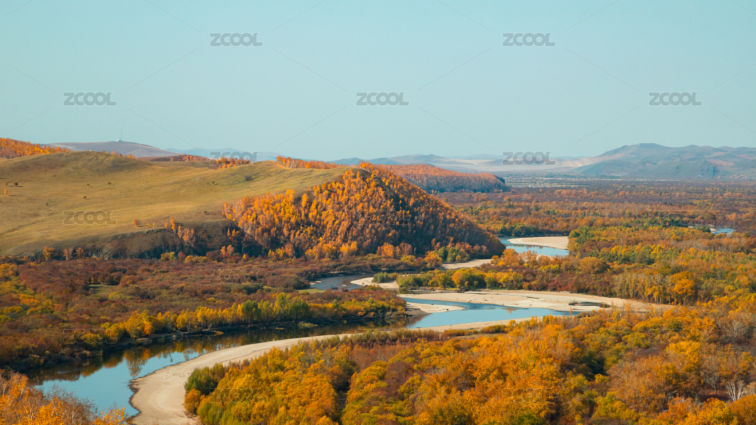 秋天美丽的蜿蜒流淌的额尔古纳河