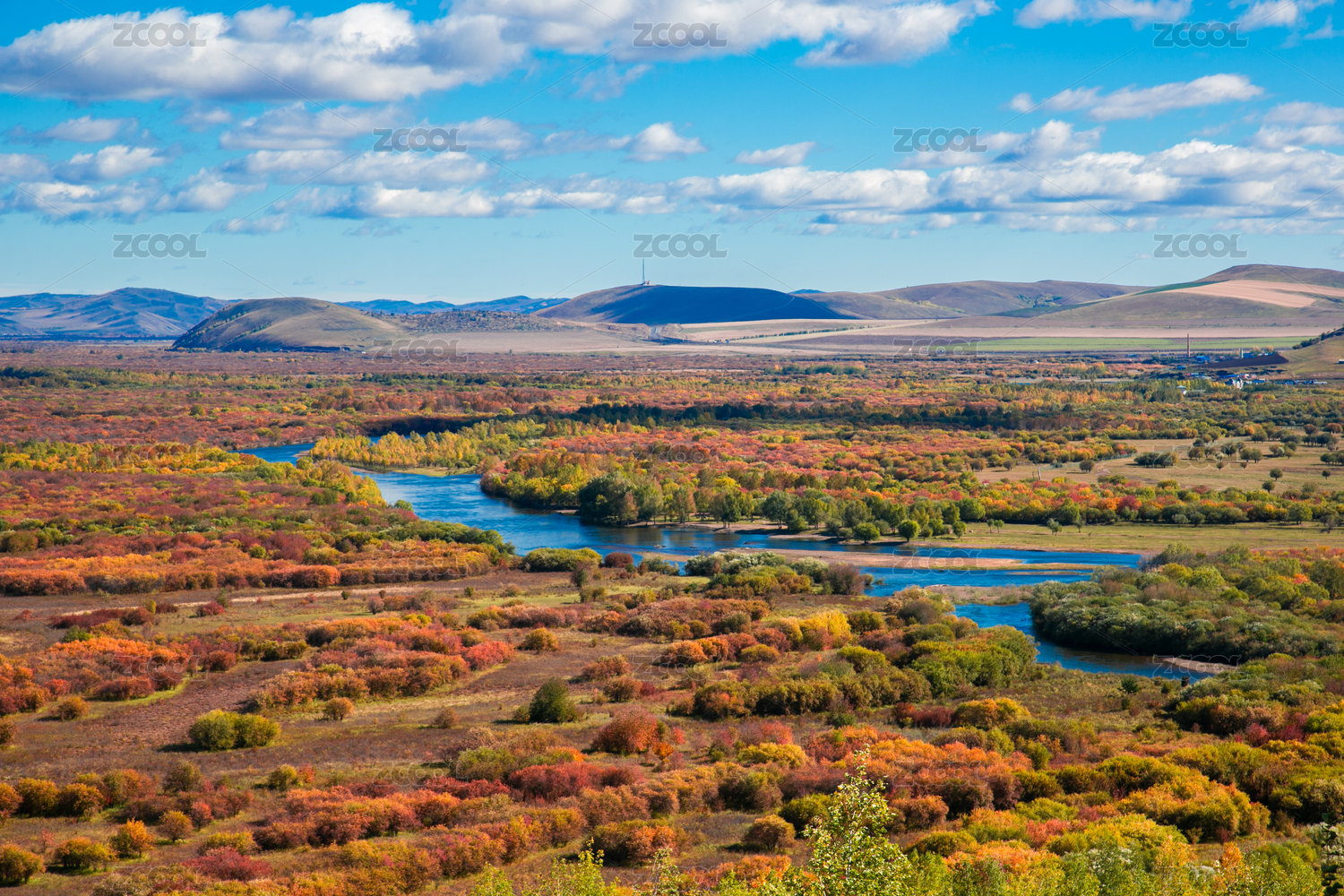 中国内蒙古呼伦贝尔额尔古纳湿地公园秋景