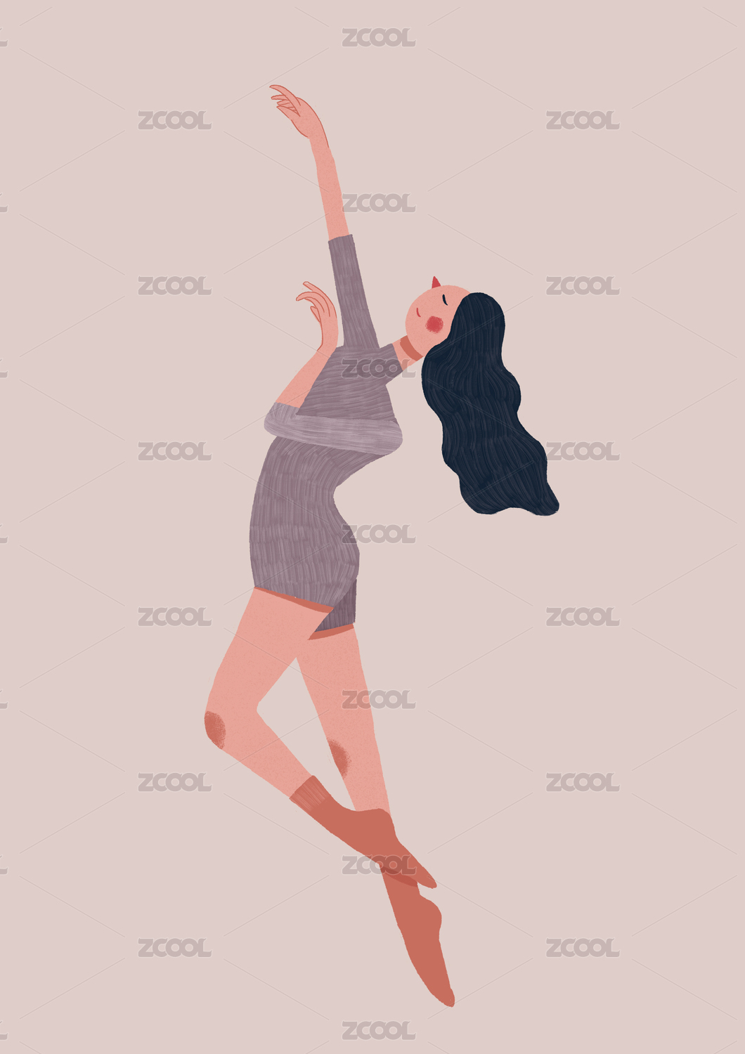 芭蕾,少女,扁平插画,可爱,噪点,封面,杂志内页