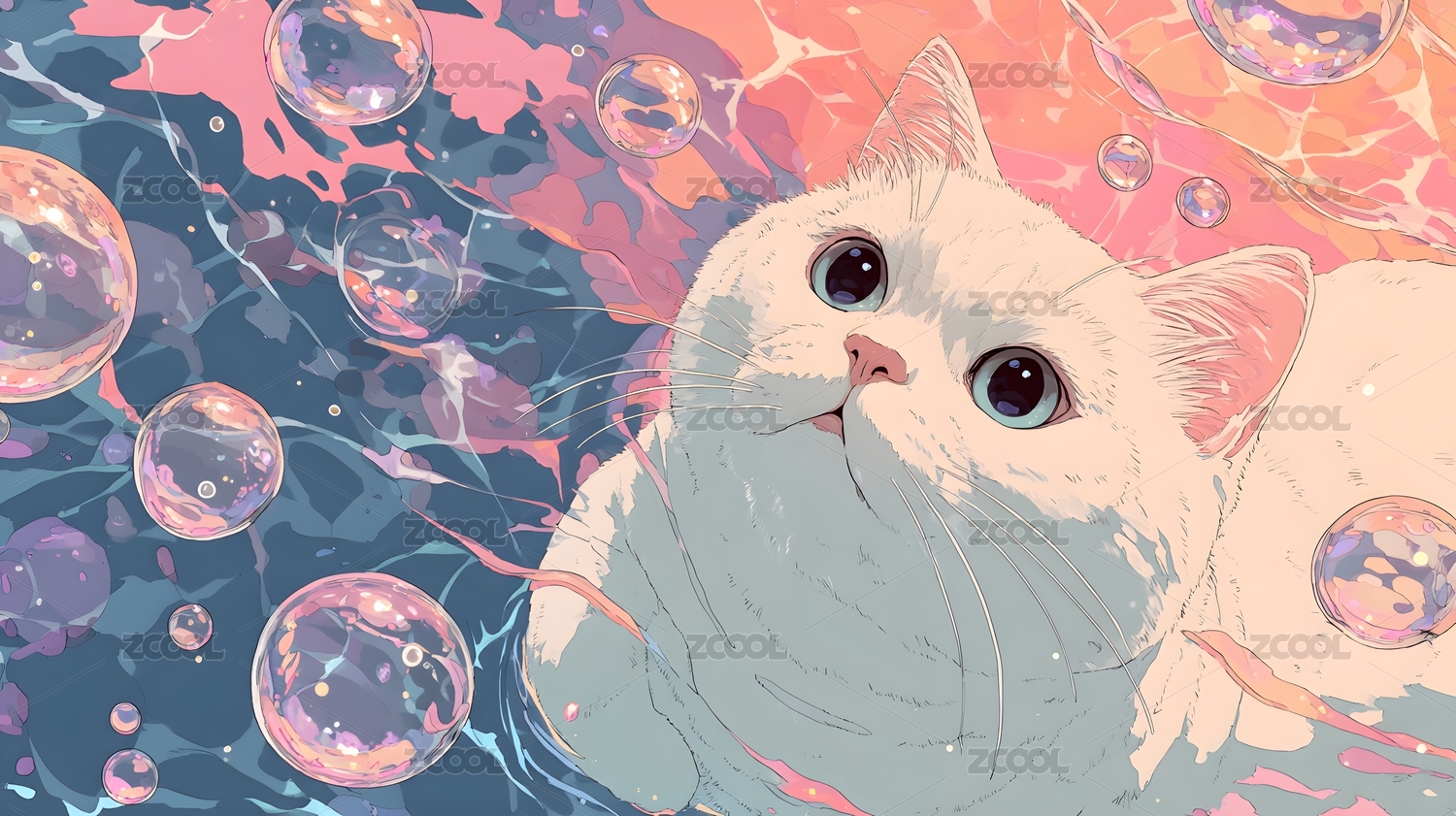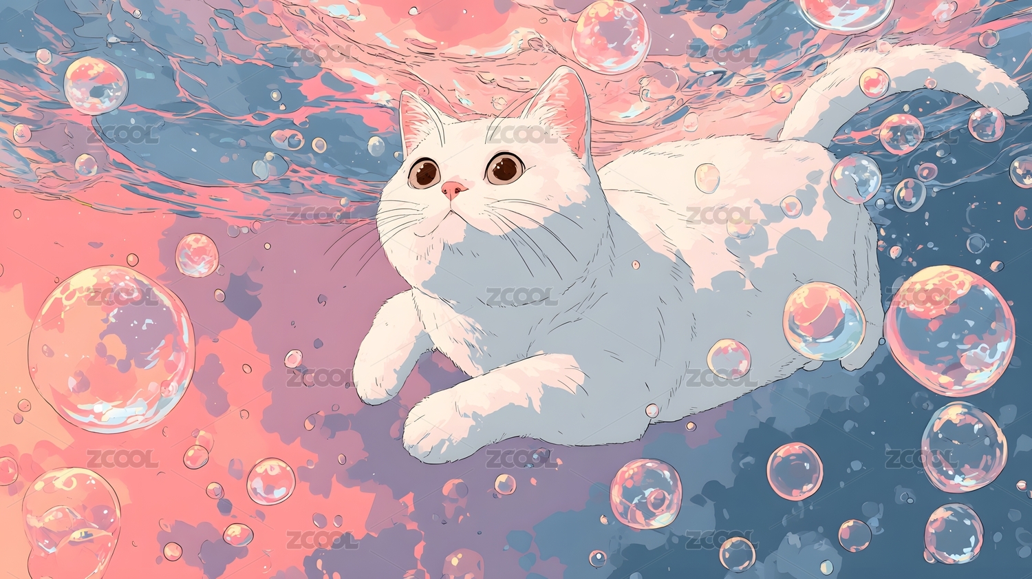 梦幻水下白猫悠游粉色世界