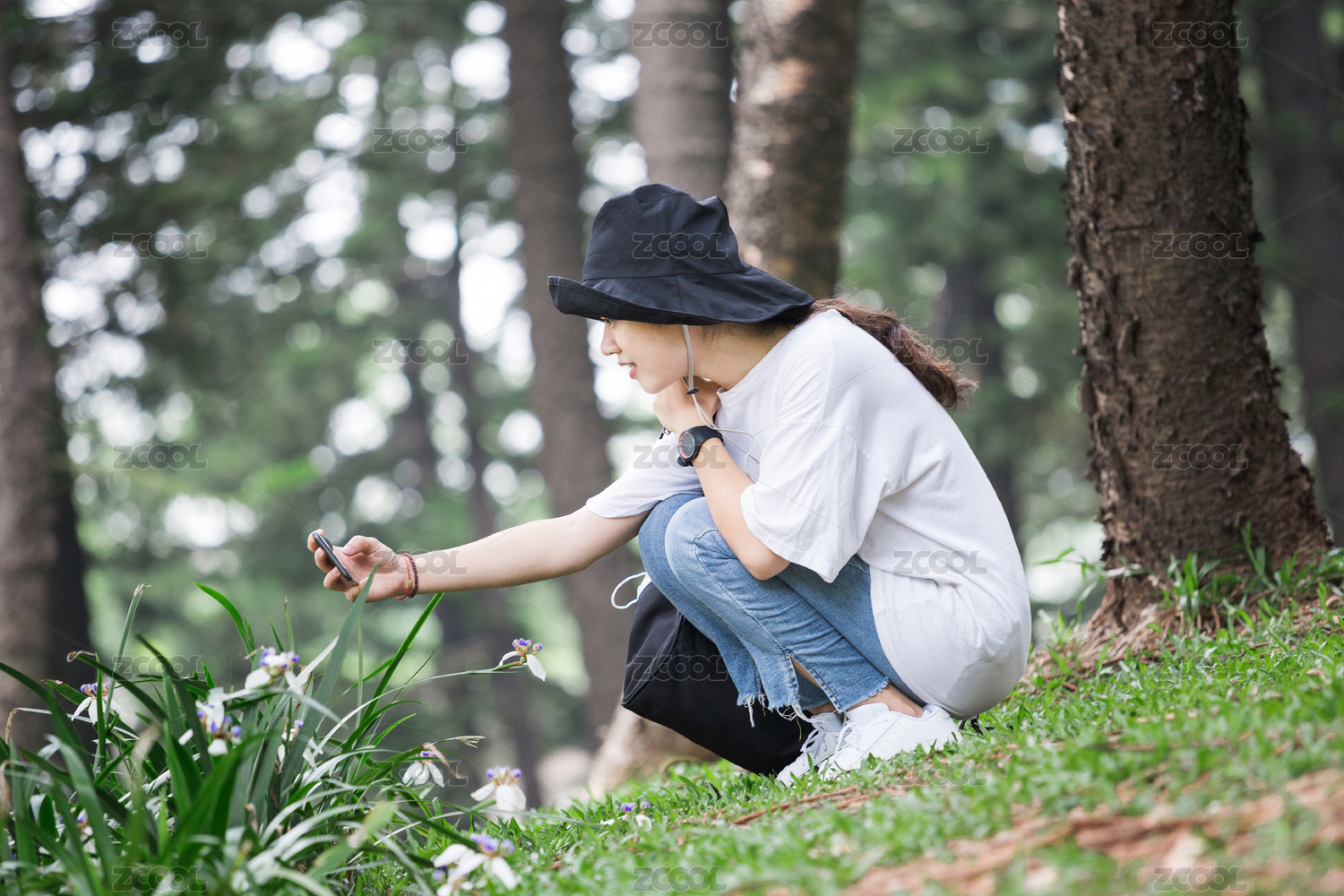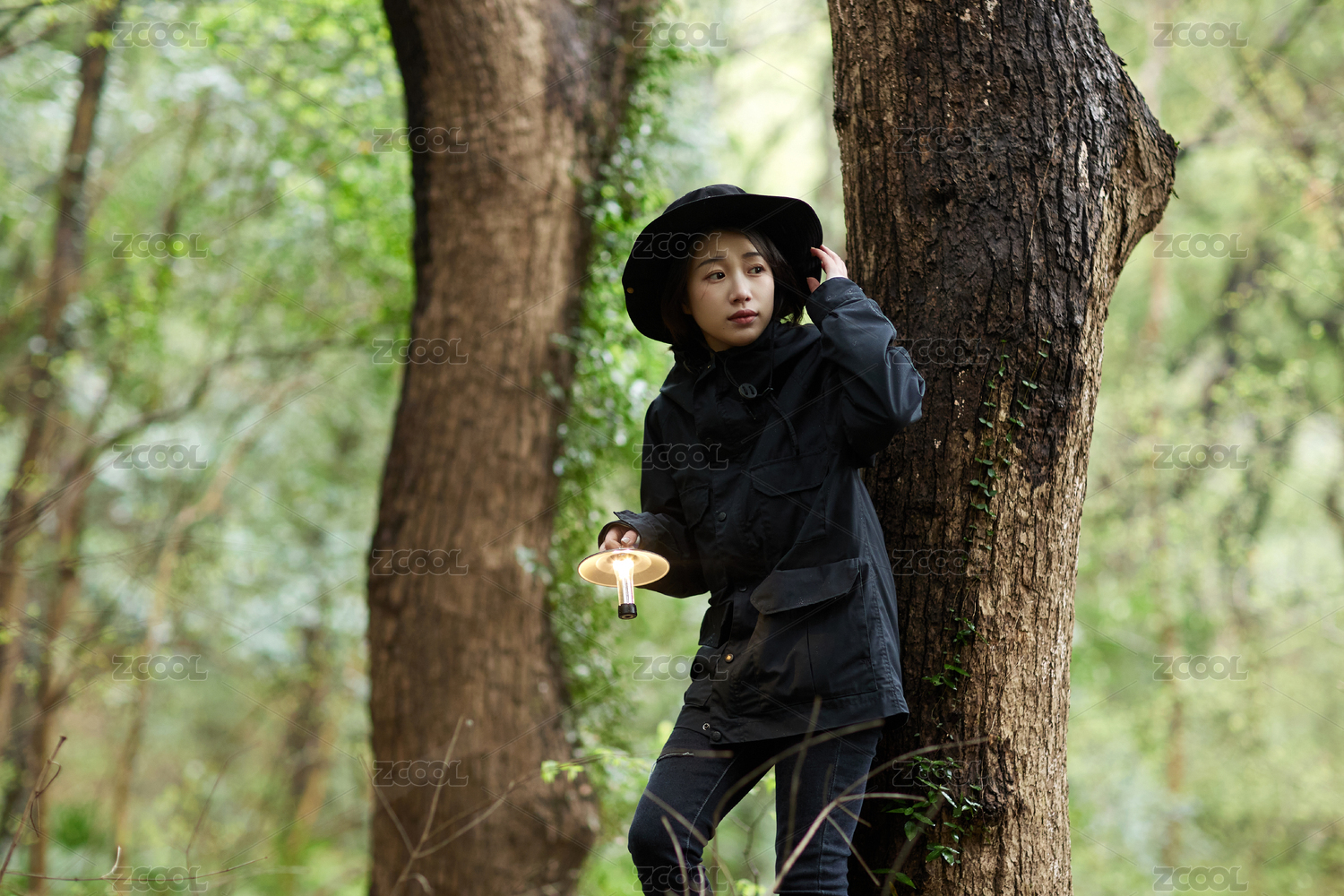 女生,女性,森林,树林,树木,树,叶子,绿色,夏天,年轻