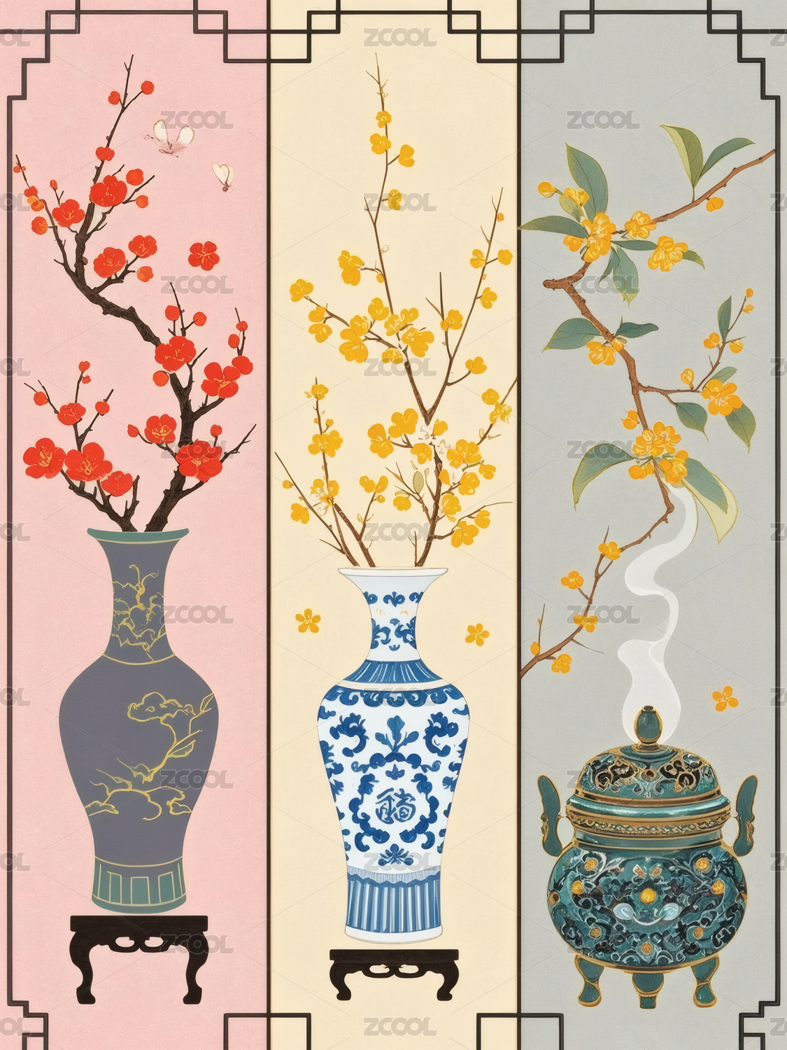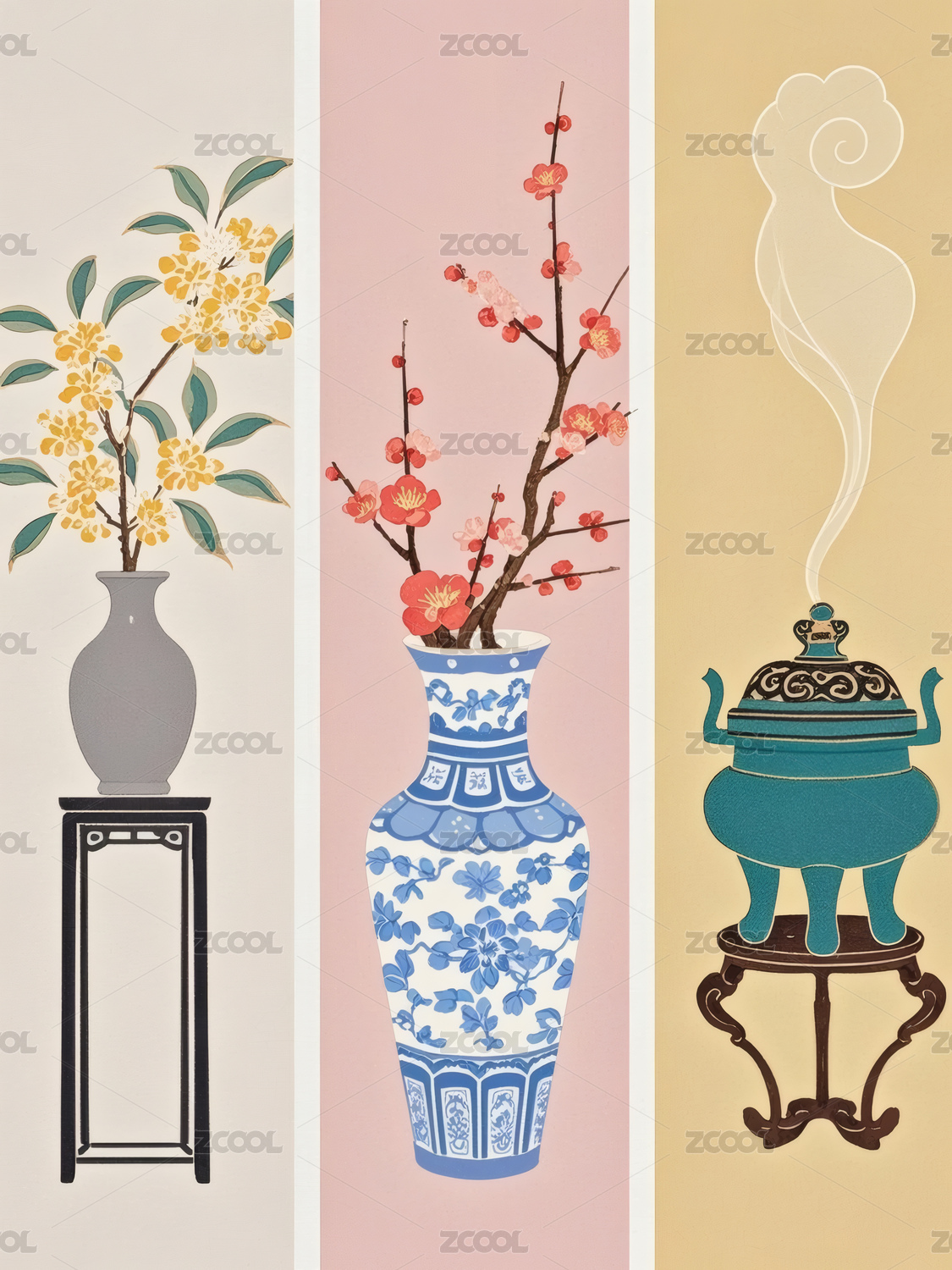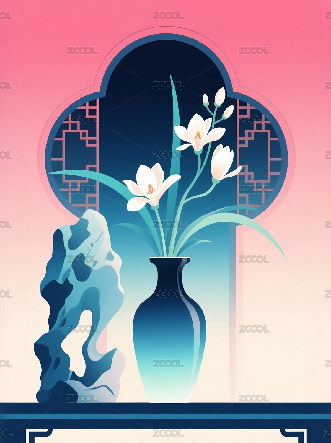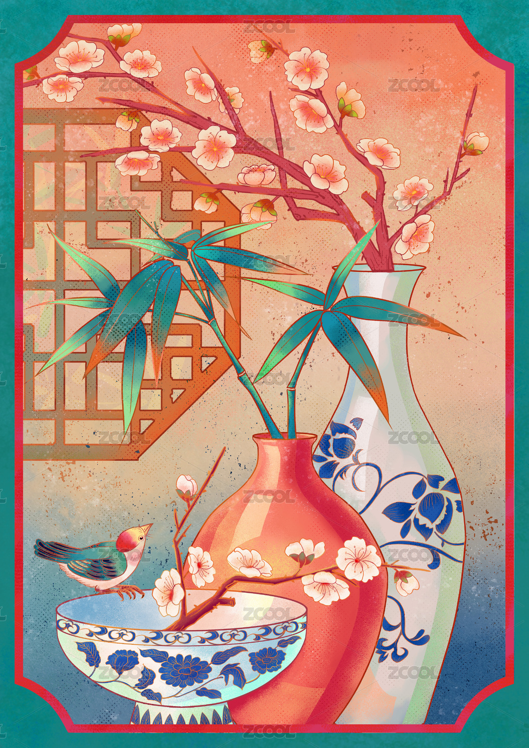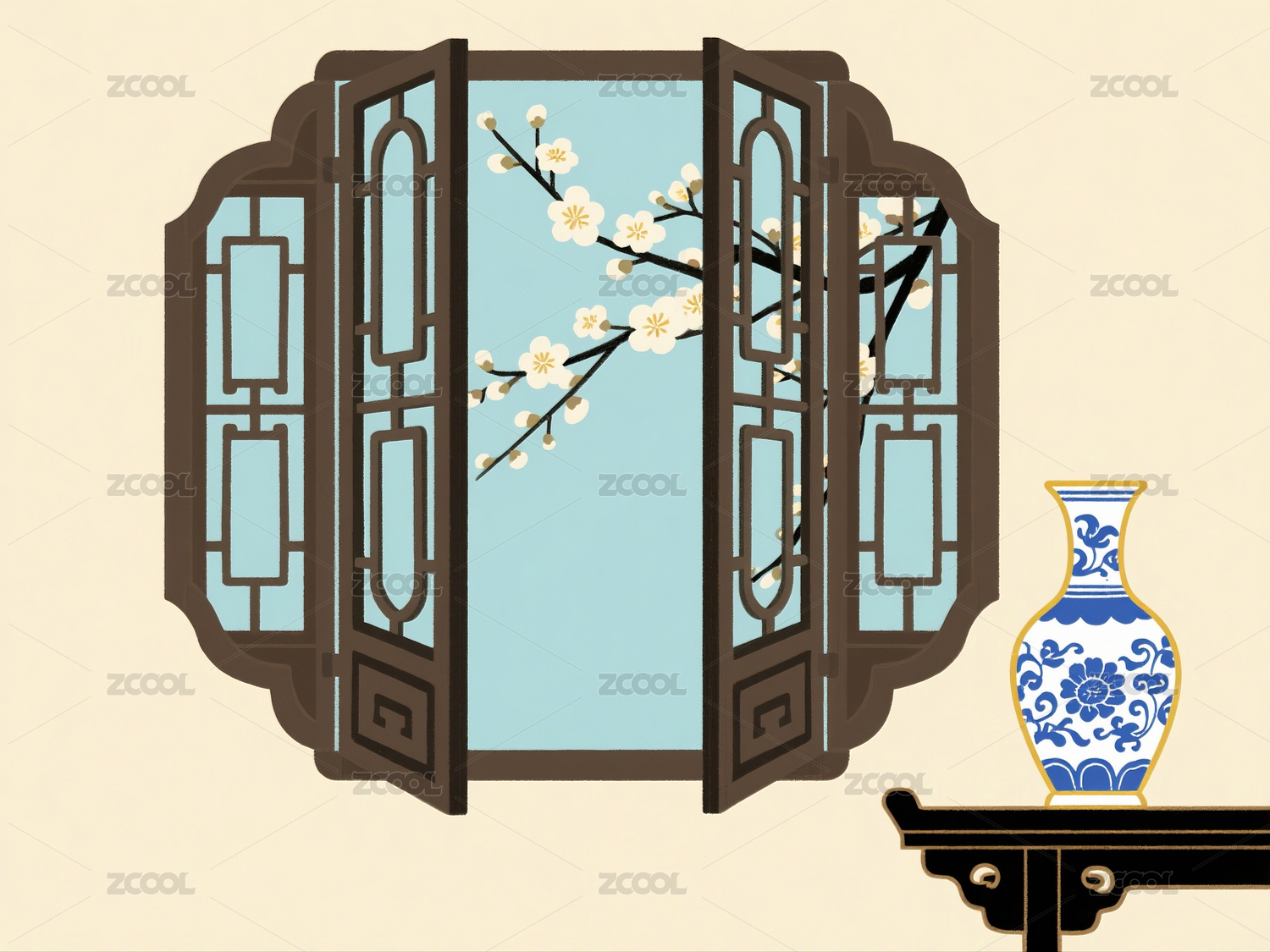 国风,惊蛰,瓷器,案几,燕子,国潮,古风,插花,窗户