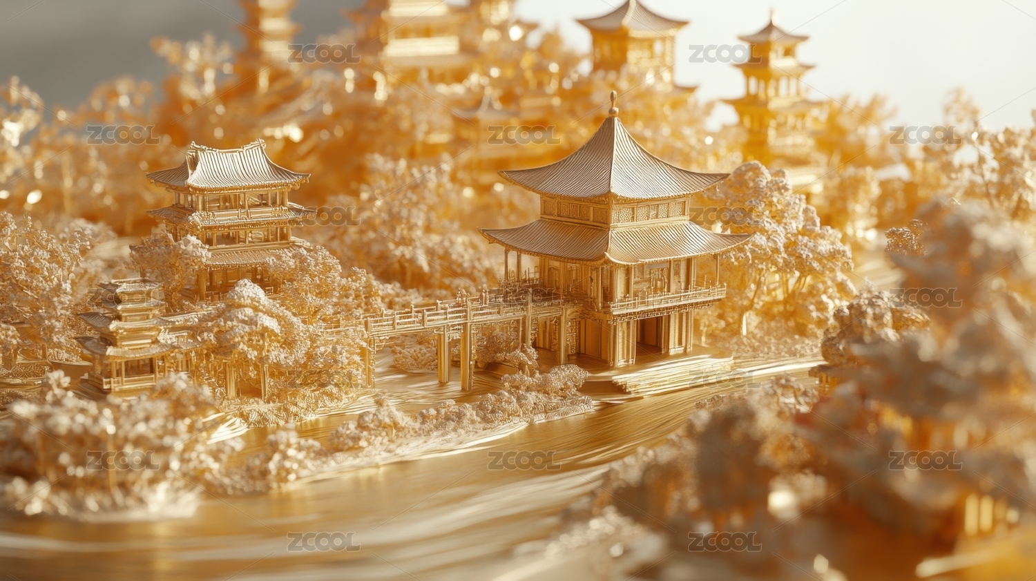 金色雕刻的古代建筑景观