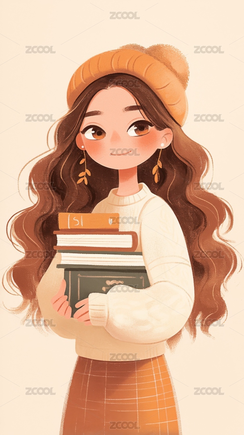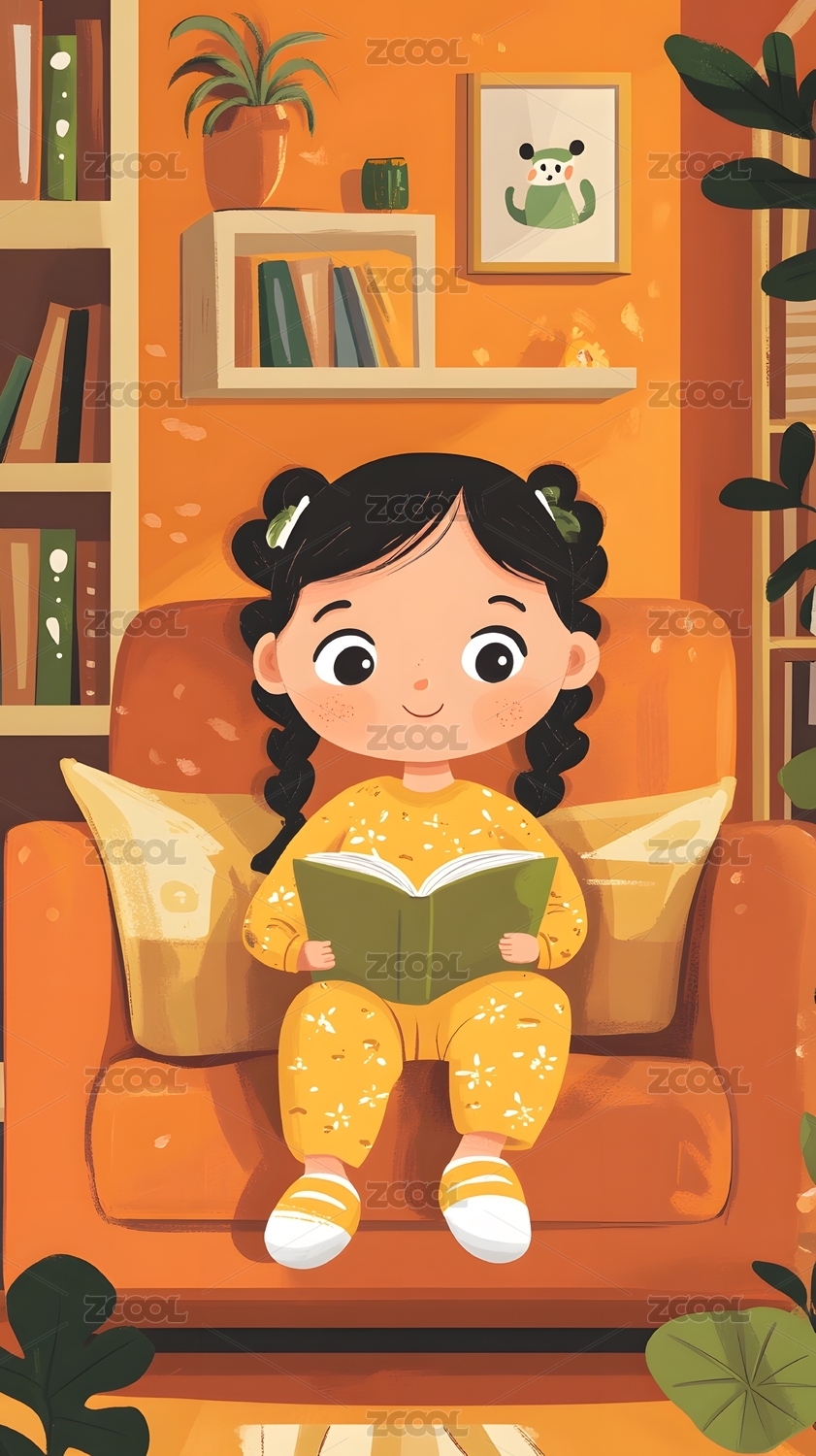 平面,肌理,插画,竖屏,彩铅,彩色,清新,鲜艳,女孩,沙发