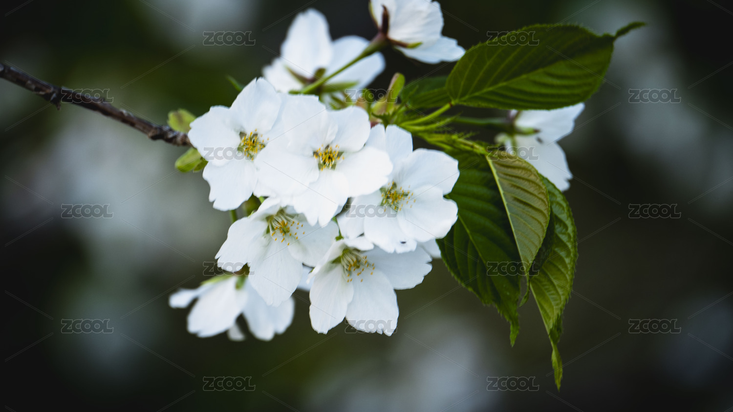 春天盛开的白色樱花