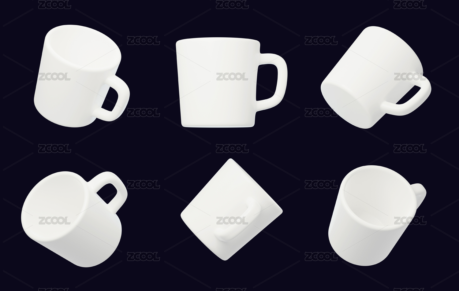马克杯3试图3D建模休闲容器