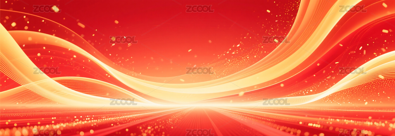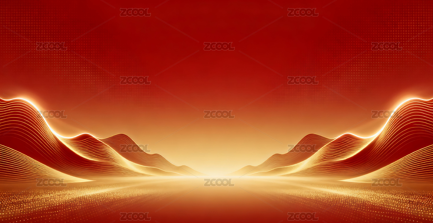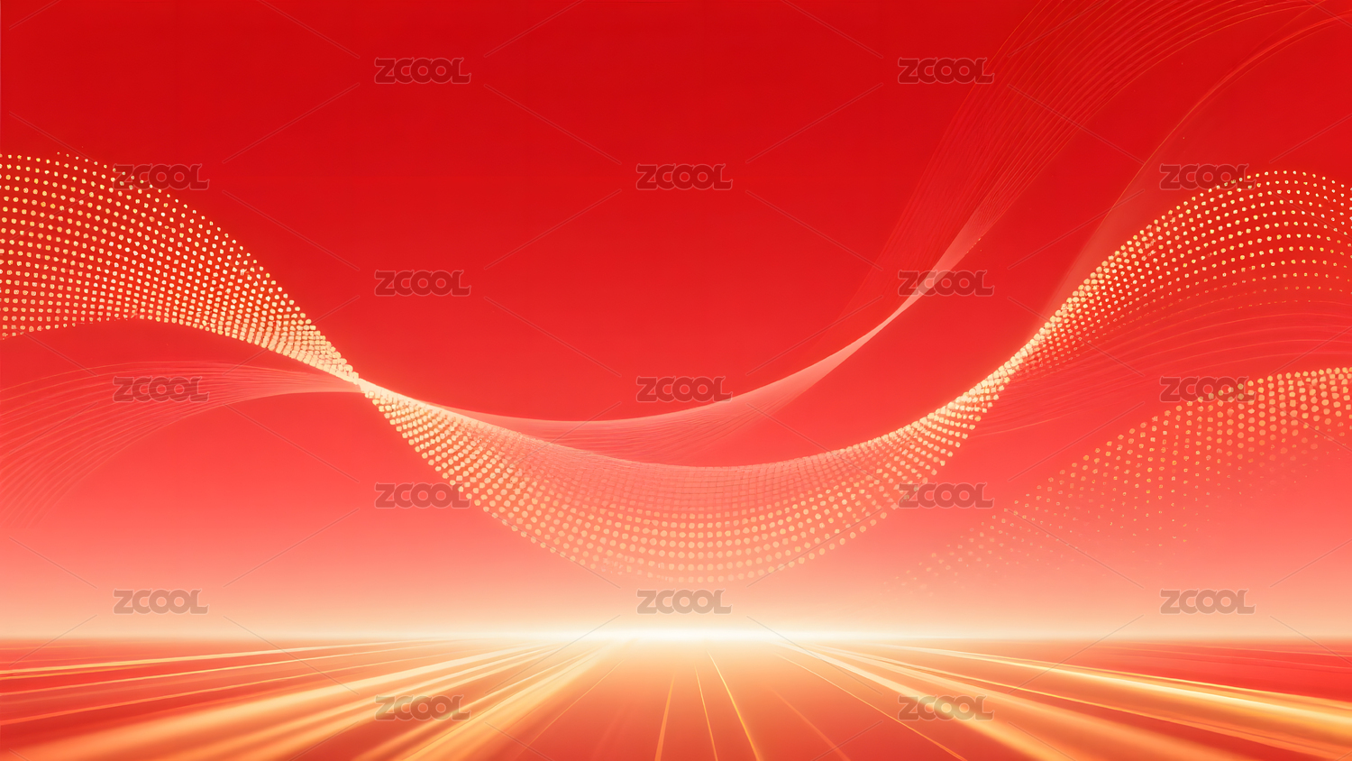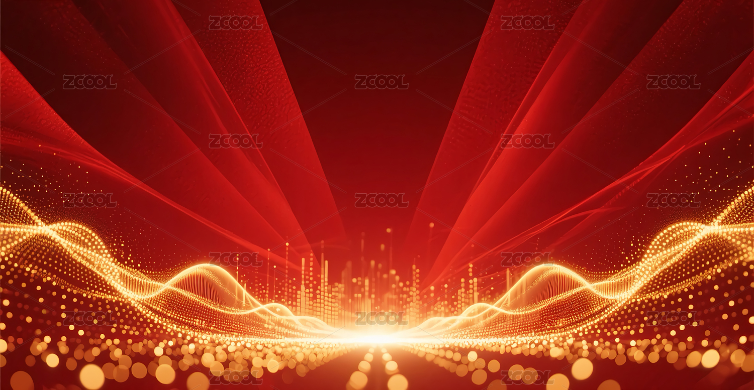 金色粒子线围绕红色背景喜庆科技感海报背景