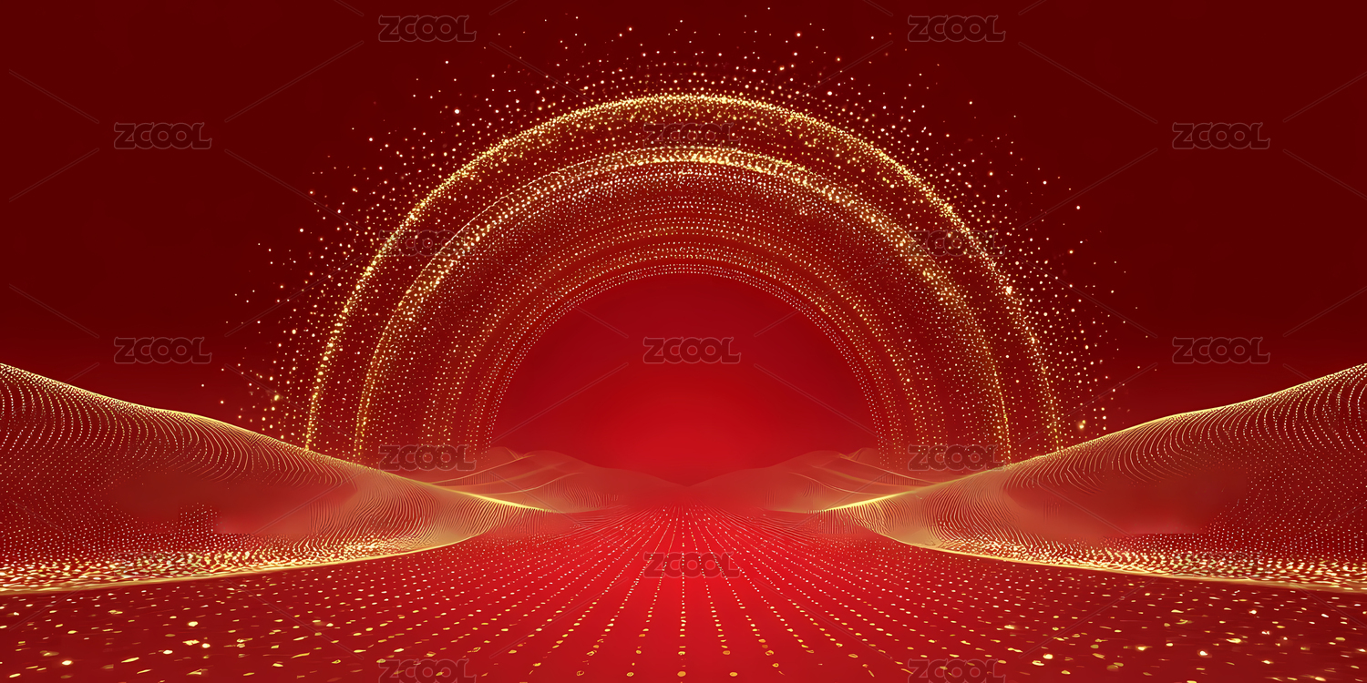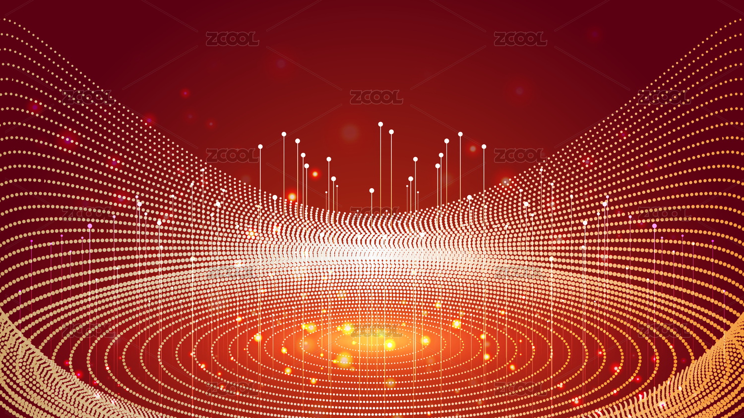 金色粒子线围绕红色背景喜庆科技感海报背景